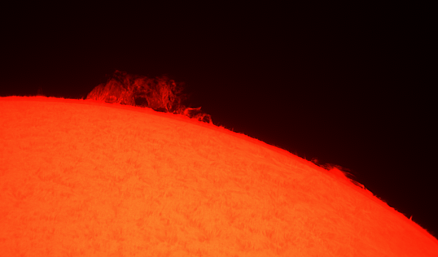 Rund 50 Minuten vor dem nächsten Bild sah die schöne Protuberanz so aus. Man kann die Veränderung der Struktur bereits in dieser relativ kurzen Zeit erkennen …