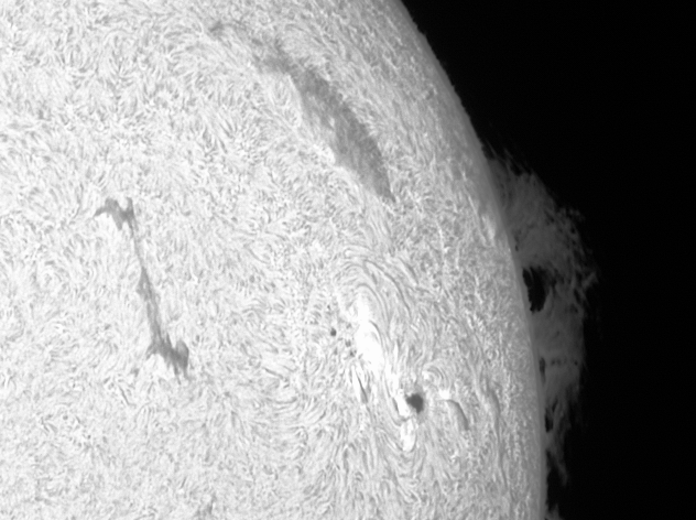 Hier ein Versuch, Oberfläche und Protuberanz gleichzeitig ohne besondere Bildbearbeitung darzustellen.
