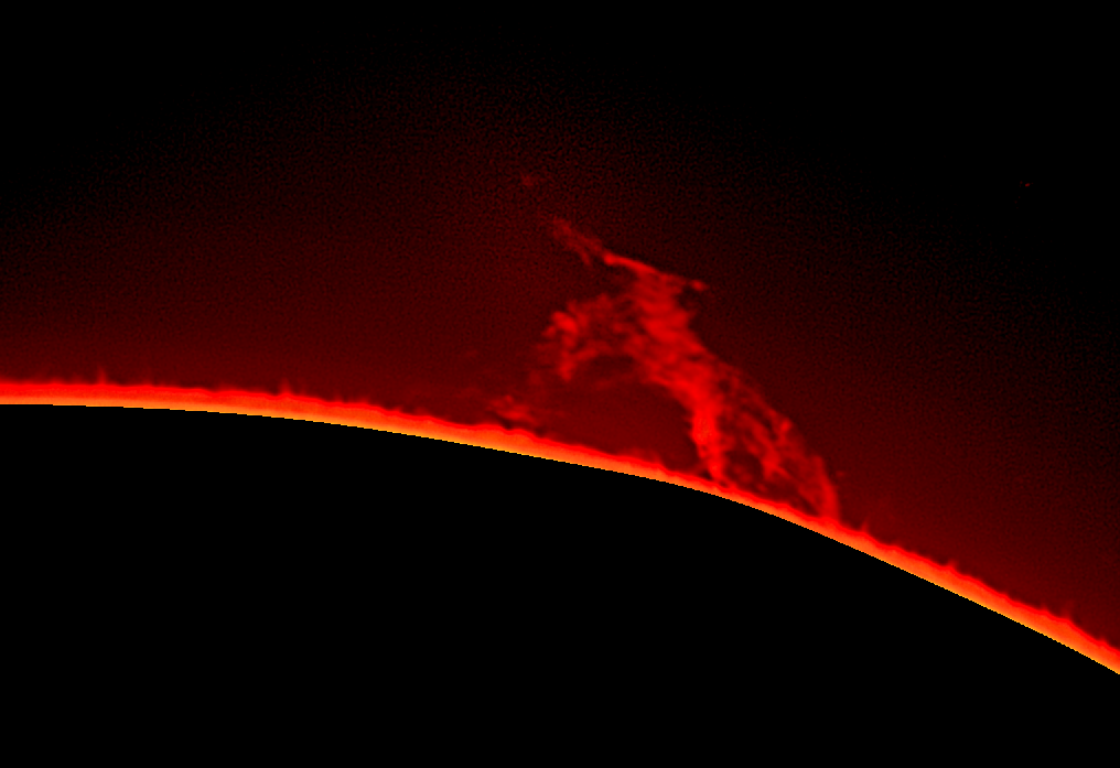 Leserbilder Astronomie: Protuberanz (links) etwa 21/2 Stunden nach Guy Heinens Aufnahme