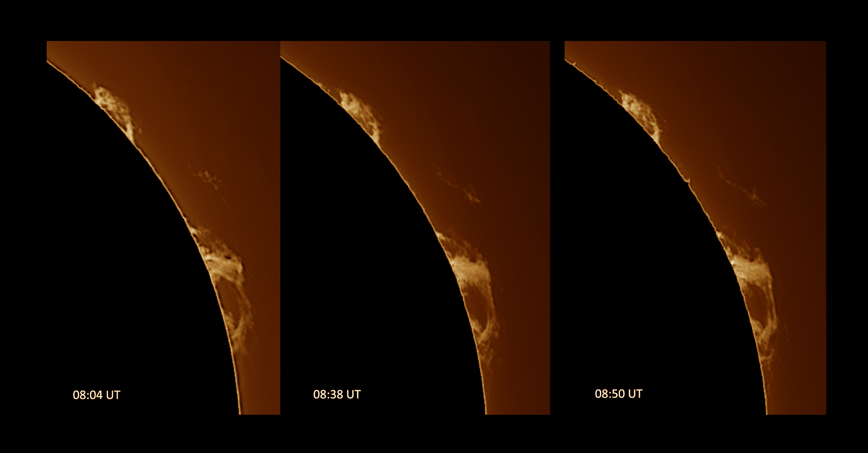 Diese großen und schönen Protuberanzen waren gestern Vormittag am Sonnenrand zu beobachten. Es ist immer wieder fanzinierend, wie schnell sich diese Protuberanzen ändern.