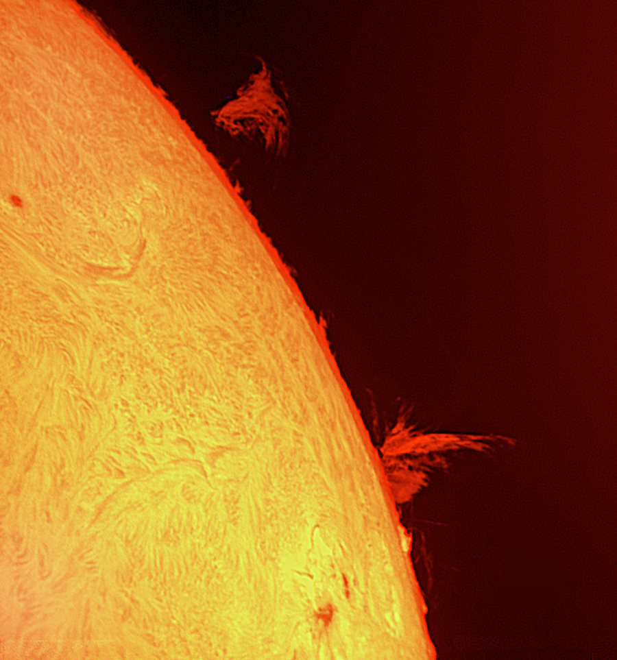 Diese zwei Protuberanzen waren eine Aufnahme wert. Die anderen fielen leider den Wolken zum Opfer.