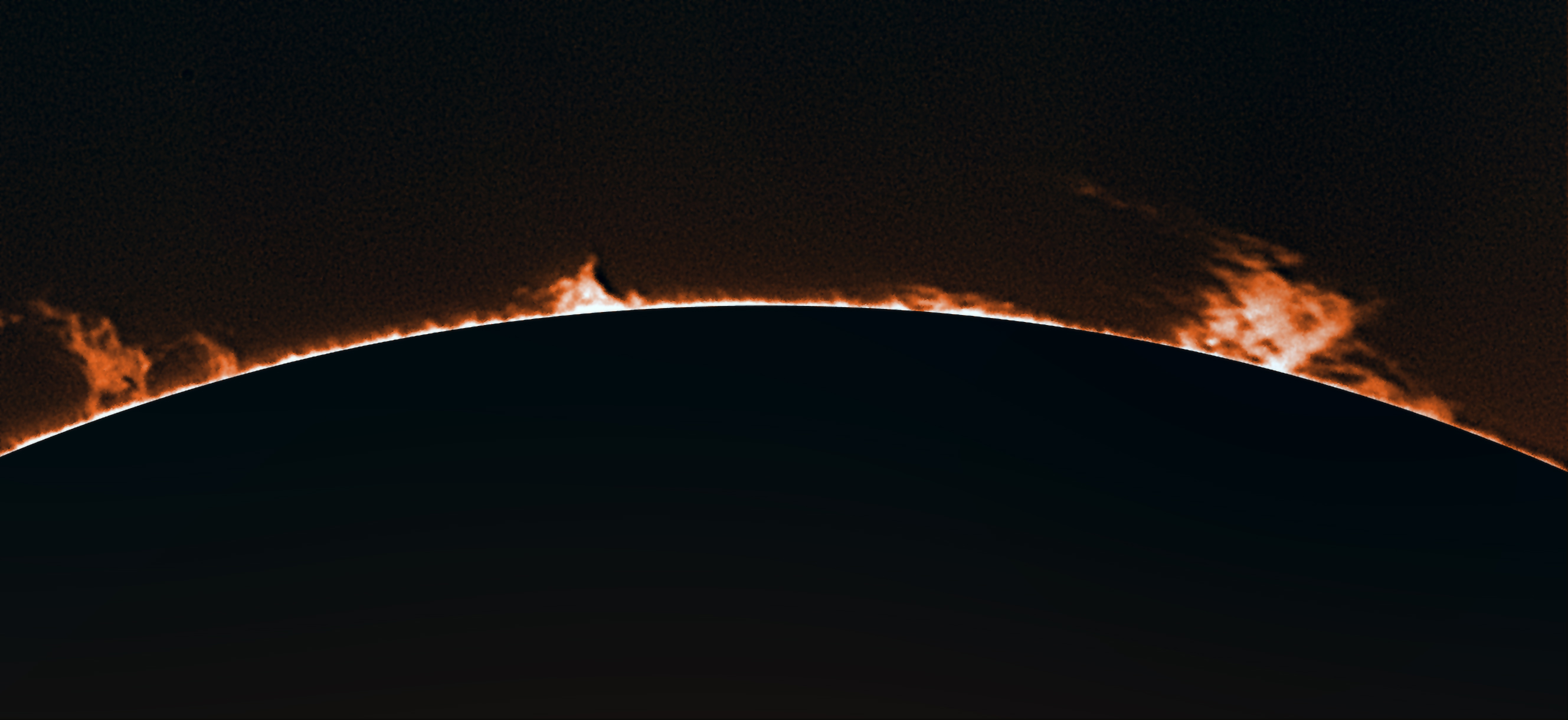 Detailaufnahme der Protuberanzen am 23. Mai. Dafür kam die 3x Tele Vue-Barlowlinse zum Einsatz.