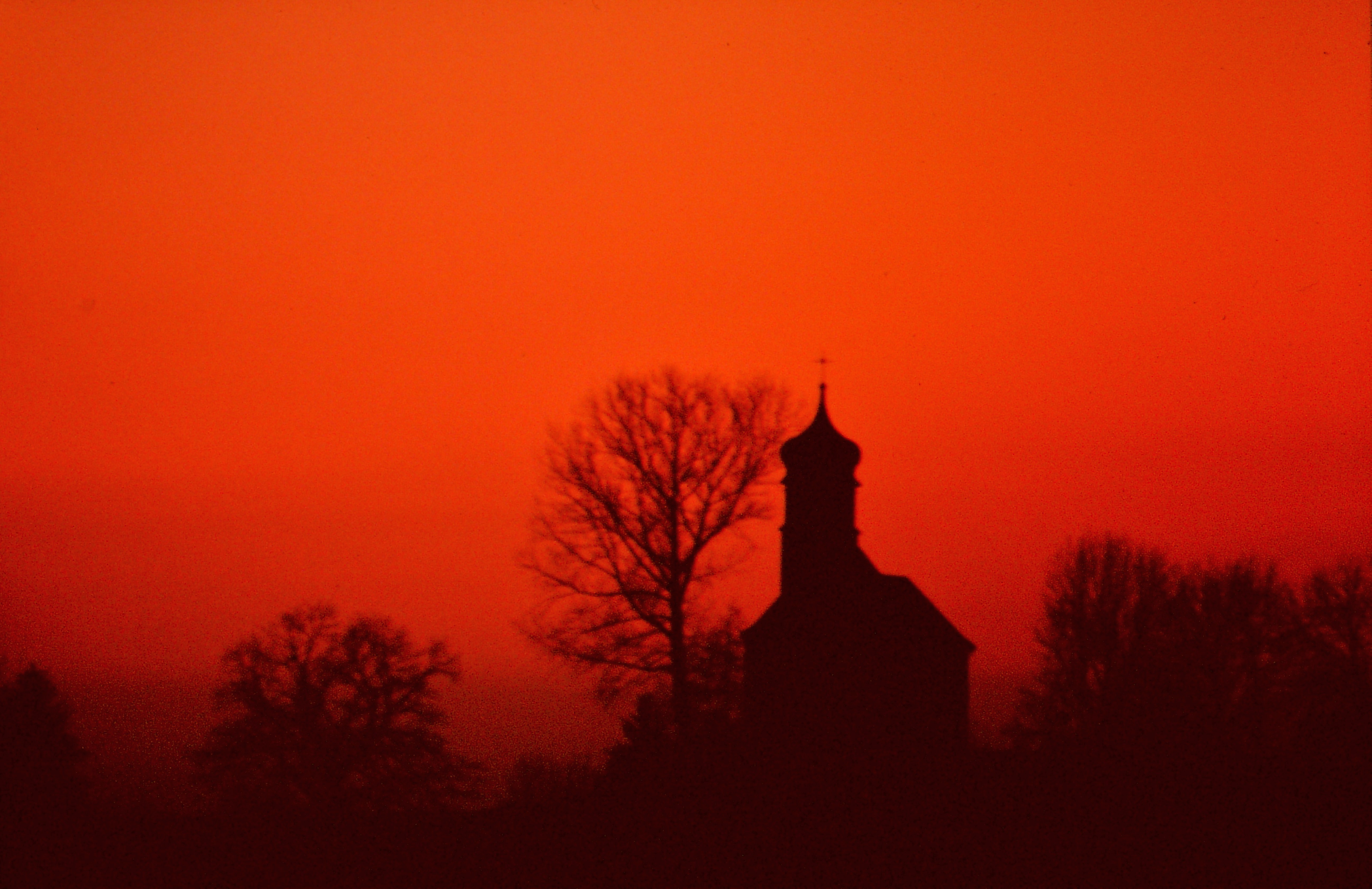 Leserbilder Astronomie: Purpurlicht über der Volkertshauser Kapelle
