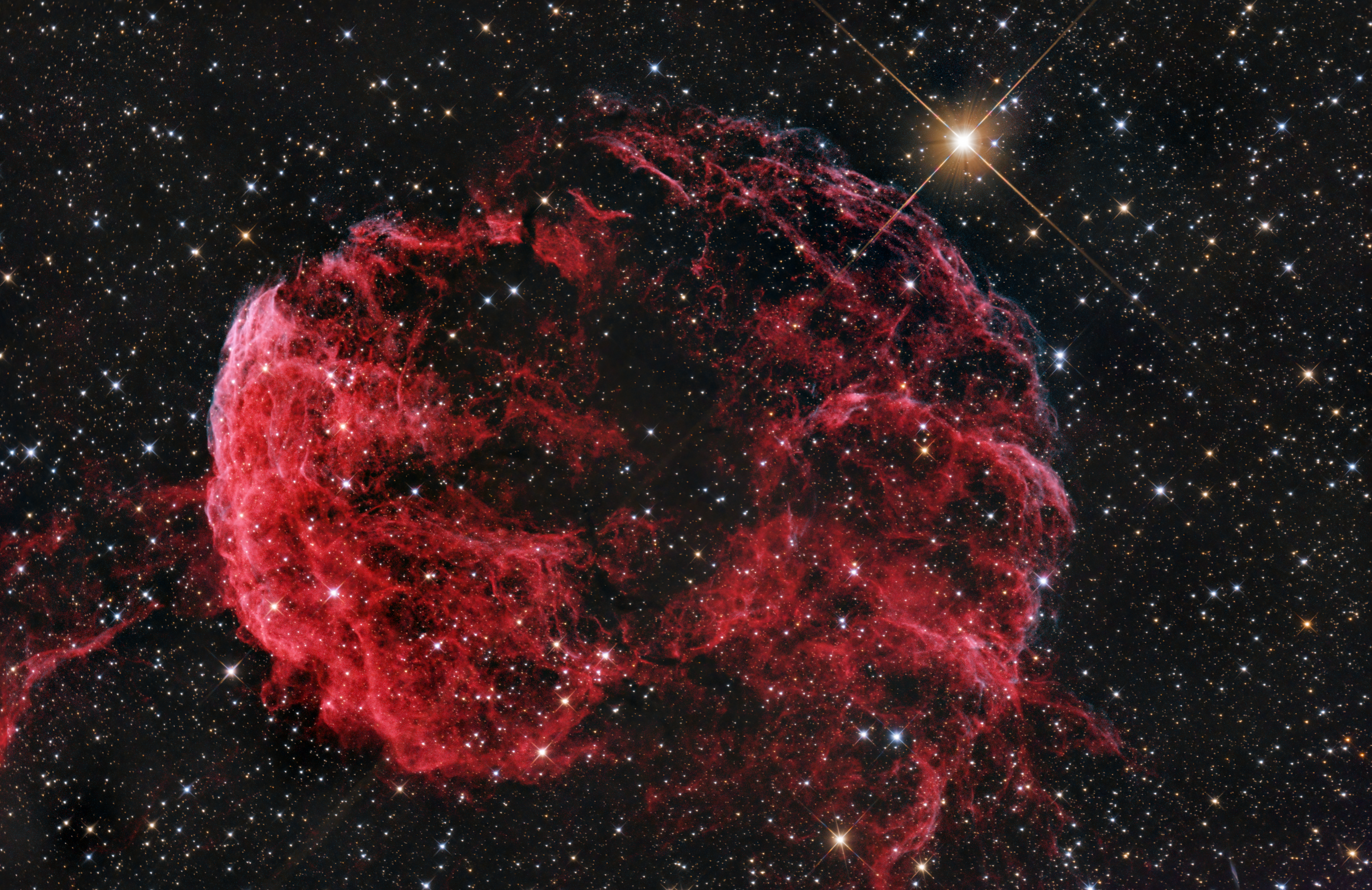 Nach langer, wolkenverhangener Durststrecke konnte in den eisigen und wolkenfreien Winternächten dieser Supernova-Überrest abgelichtet werden.