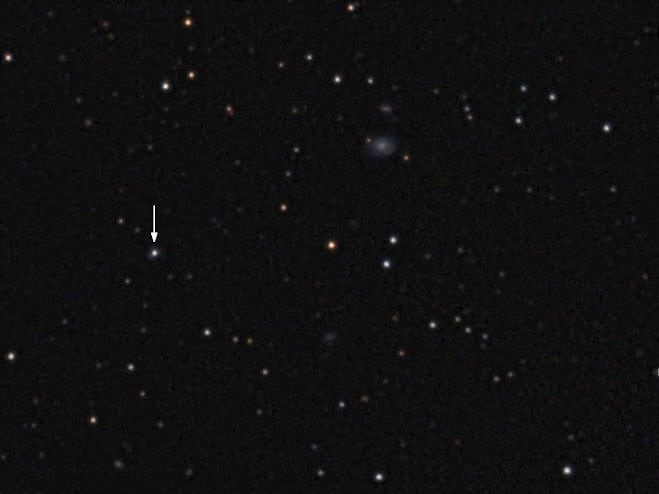 Q1224-1116 ist einer der leuchtkräftigsten Quasare (Markierung) die wir kennen, der uns trotz seiner großen Entfernung noch mit 15,37 mag entgegenstrahlt.