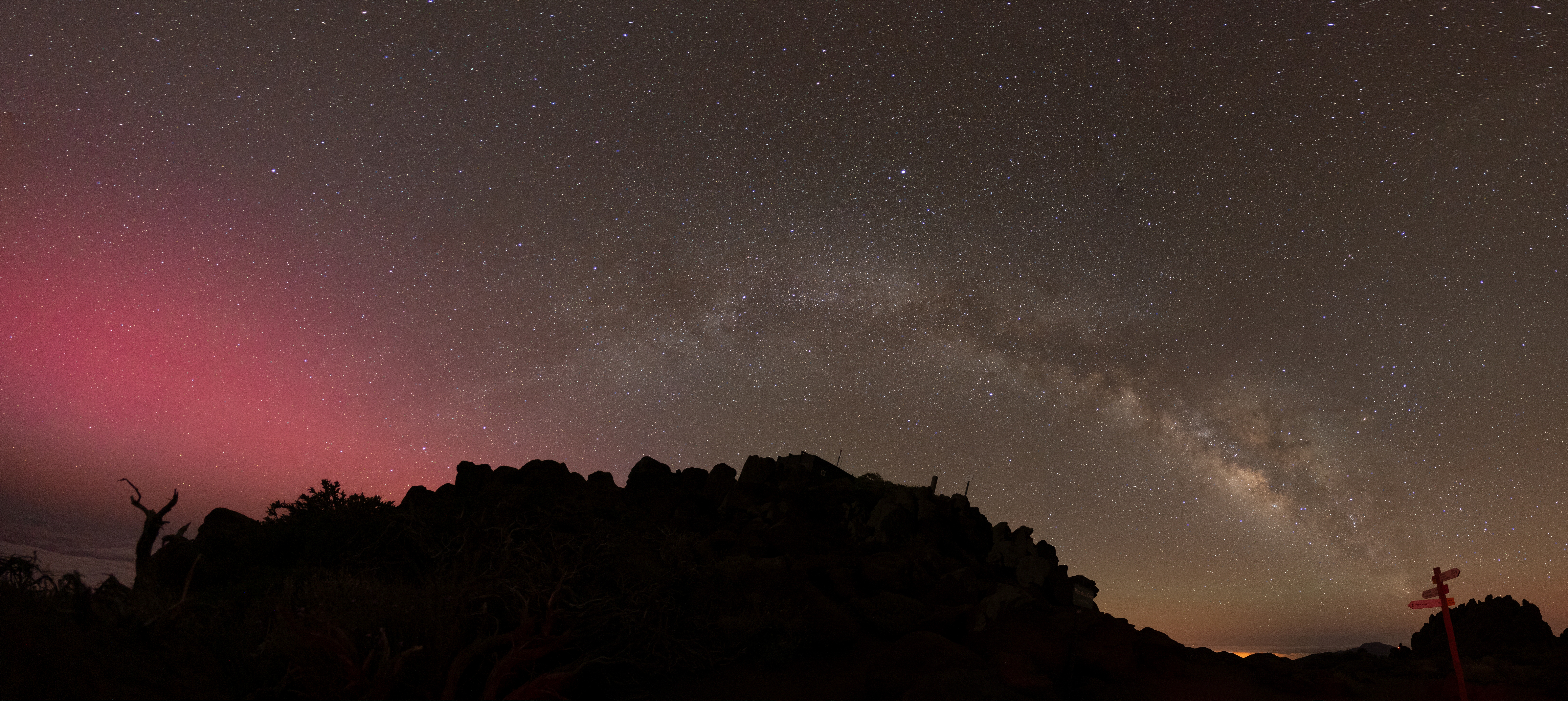 Mein erstes Mosaik von der Milchstraße mit einem Superweitwinkelobjektiv. Die Überraschung war groß, als ich das Polarlicht auf den Aufnahmen entdeckte. Auf La Palma!!! So weit im Süden hätte ich sie nie vermutet. Ein einmaliges tolles Erlebnis.