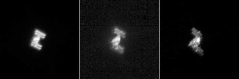 Die drei Aufnahmen zeigen die Raumstation ISS während des Überflugs über den Stuttgarter Nachthimmel.