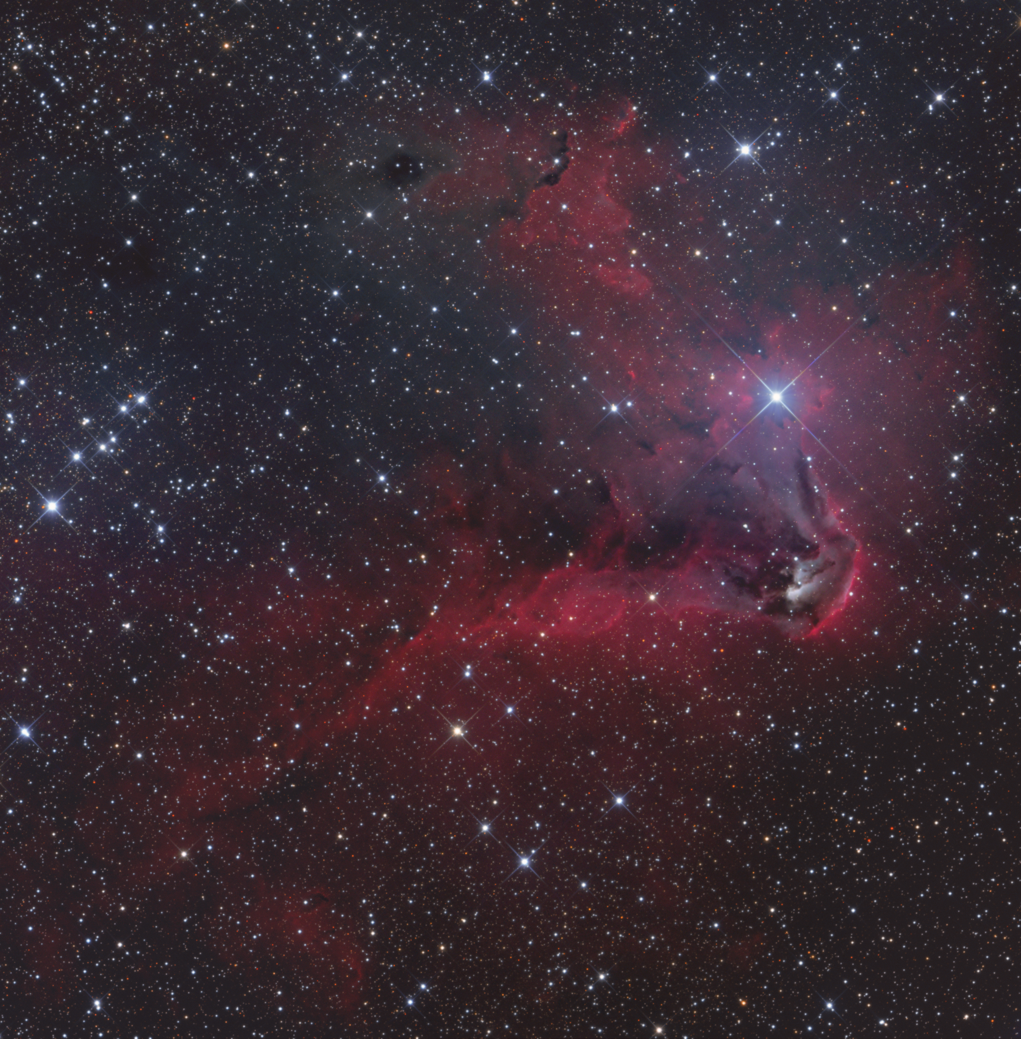 Selten abgebildet ist dieser wunderschön strukturierte Nebel RCW 85, der auf halbem Weg zwischen Alpha und Beta Centauri liegt.