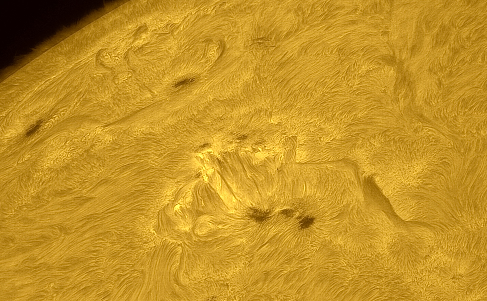 Strukturreiche aktive Region am SWS-Rand der Sonnenscheibe