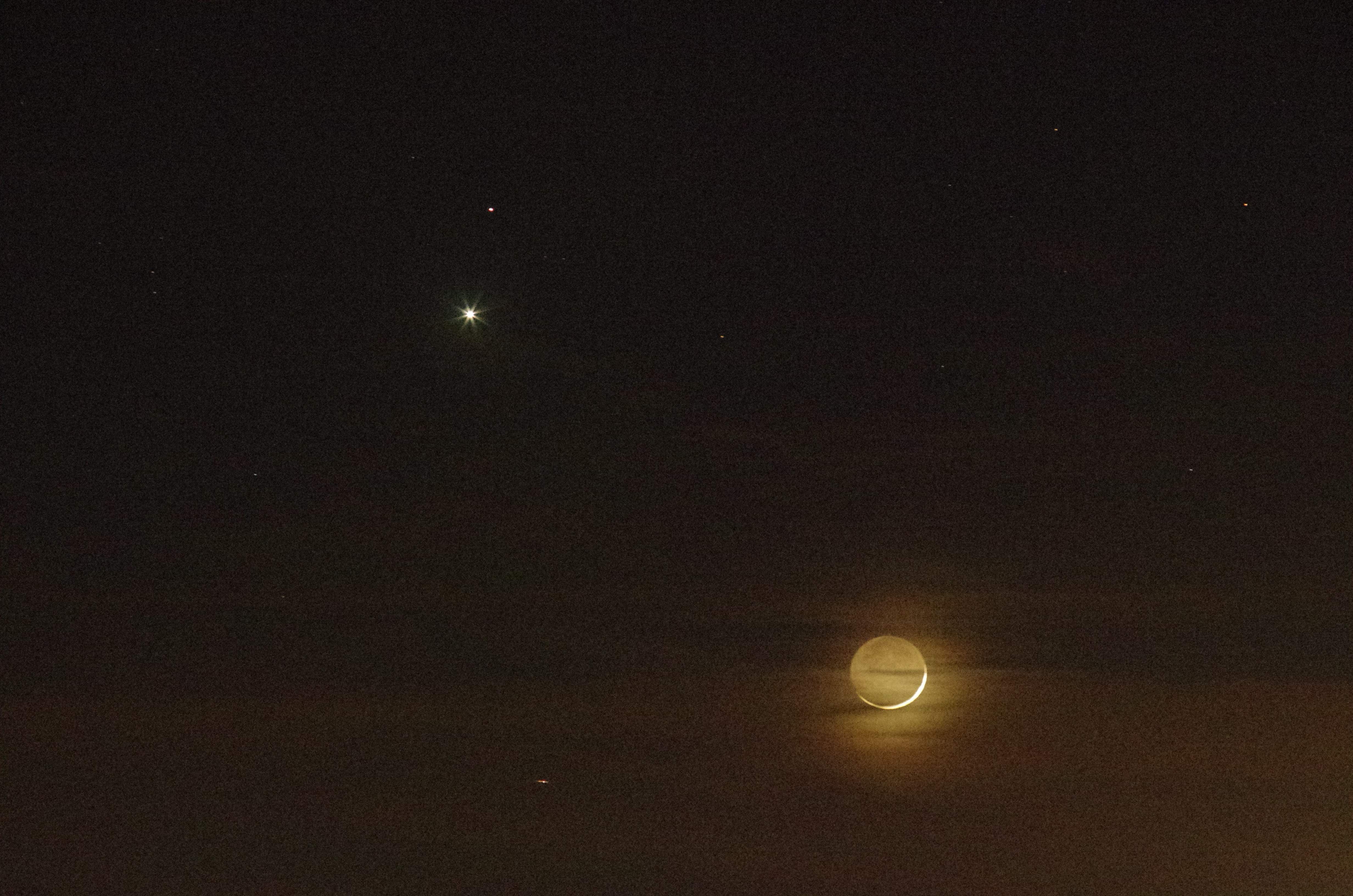 Die Aufnahme wurde einen Tag vor der größten Annäherung von Venus an Mars gemacht. Da der Mond sich ganz in der Nähe befand, kann der Abstand zwischen Venus und Mars leicht in Vollmonddurchmessern abgeschätzt werden. Leider ließ das Wetter am nächsten Tag keine Beobachtung oder Fotografie zu, aber ich bin froh, dass mir diese Aufnahme vergönnt war.