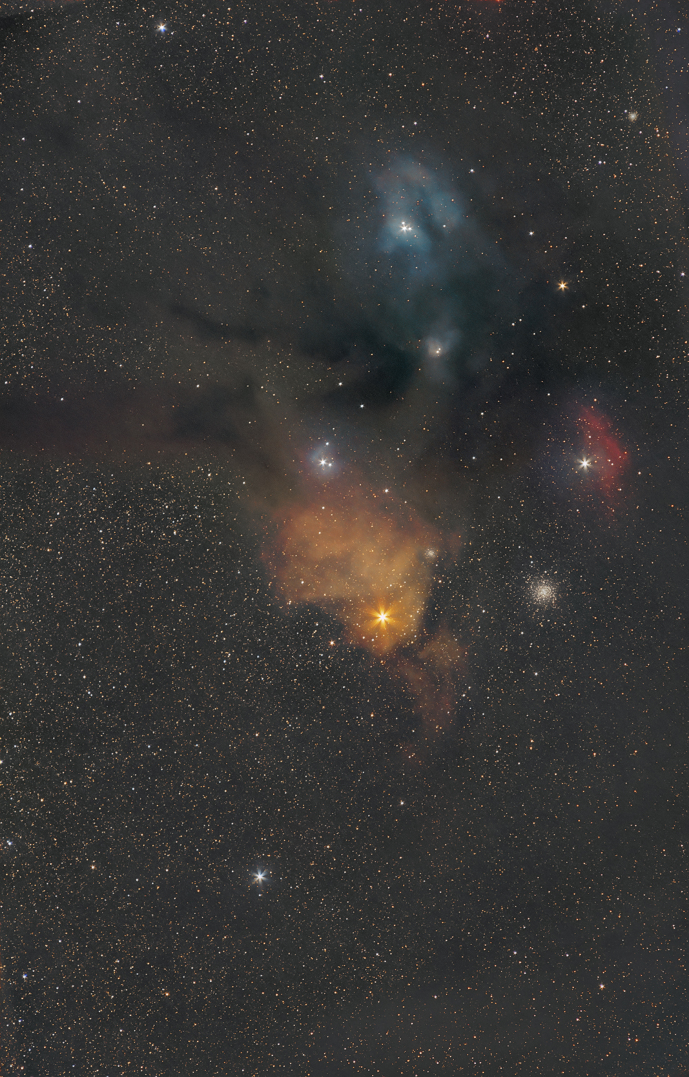 Dieser Nebelkomplex im Sternbild Skorpion bietet alle Farben und Formen. Von unserem nördlichen Himmel aus ist dies keine einfach zu fotografierende Region. Auch die Datenverarbeitung gestaltete sich interessant und aufwändig.