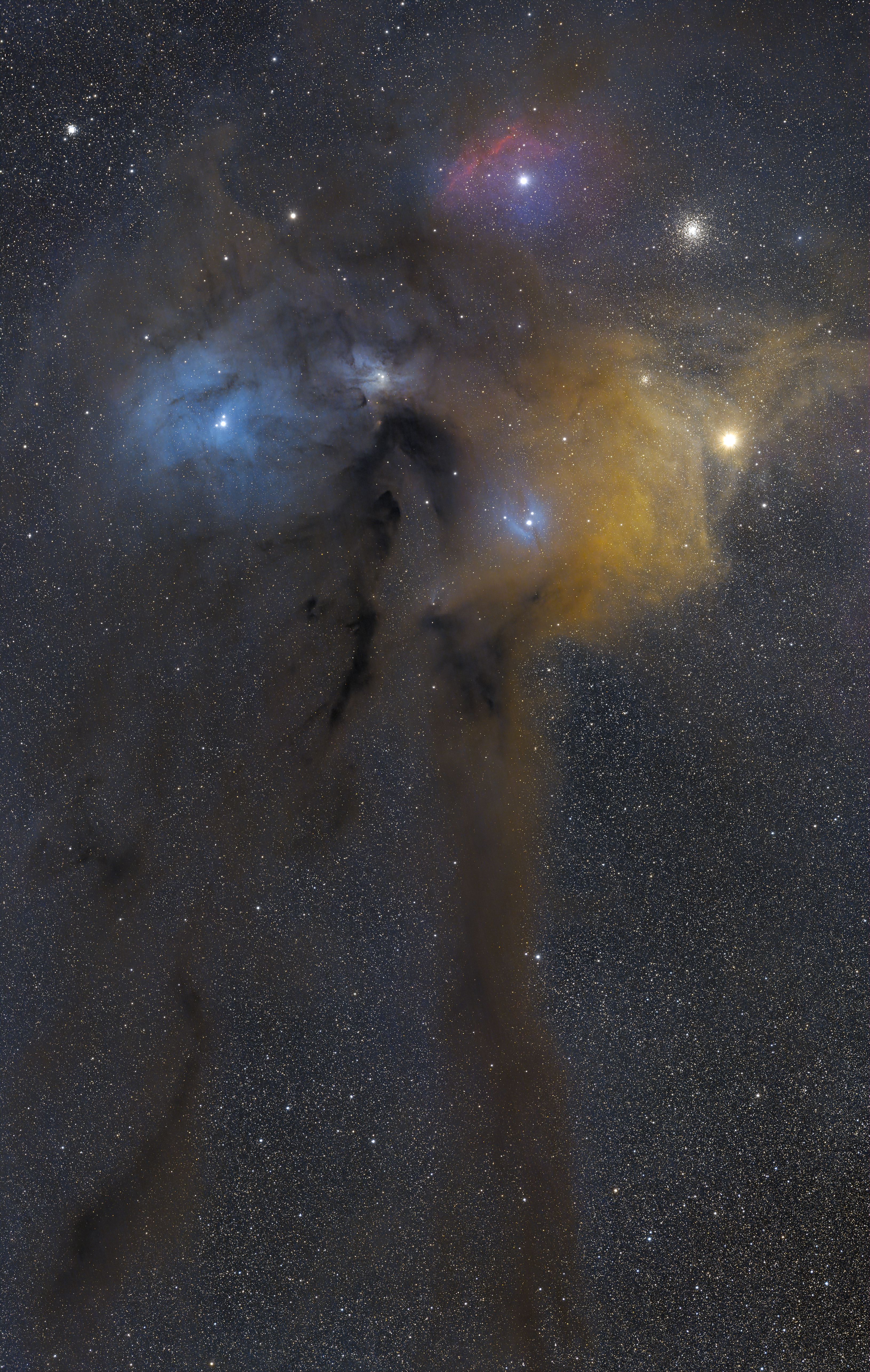 Ein lange geplanter Wunsch ist in Erfüllung gegangen. Rho Opiuchi aufzunehmen ist von meinem Heimatstandort aus eigentlich kaum in akzeptabler Qualität realisierbar. Auf La Palma hatte ich nun die Gelegenheit, über mehrere Tage unter idealen Bedingungen zu fotografieren. Zunehmend mischte sich der Mond ein, aber ich verzichtete trotzdem auf den Einsatz eines Filters. Bortle-Zone 2 zu 1 sollte ausreichen. Insgesamt kamen weit über 200 Einzellichter zustande, wobei die Sturmböen der letzten Tage nicht immer hilfreich waren. Am Ende konnte ich 173 Bilder verwenden 😊