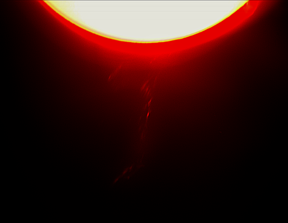 So habe ich gerade "den Rest" einfangen können. Solch eine Distanz zur Sonne ist extrem selten zu beobachten. Eine zweite Lücke ca. 30 Minuten später hat gezeigt, dass nichts mehr zu erkennen war.