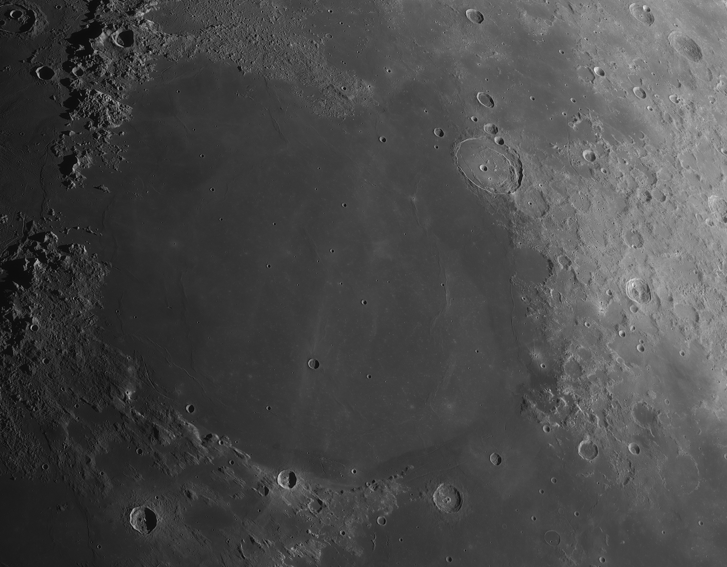 Mit den am 10. März 2022 gewonnenen Aufnahmen konnte ich eine Gesamtdarstellung des Mare Serenitatis erarbreiten, in dessen Randbereichen sich zahlreiche Rillen zeigen.