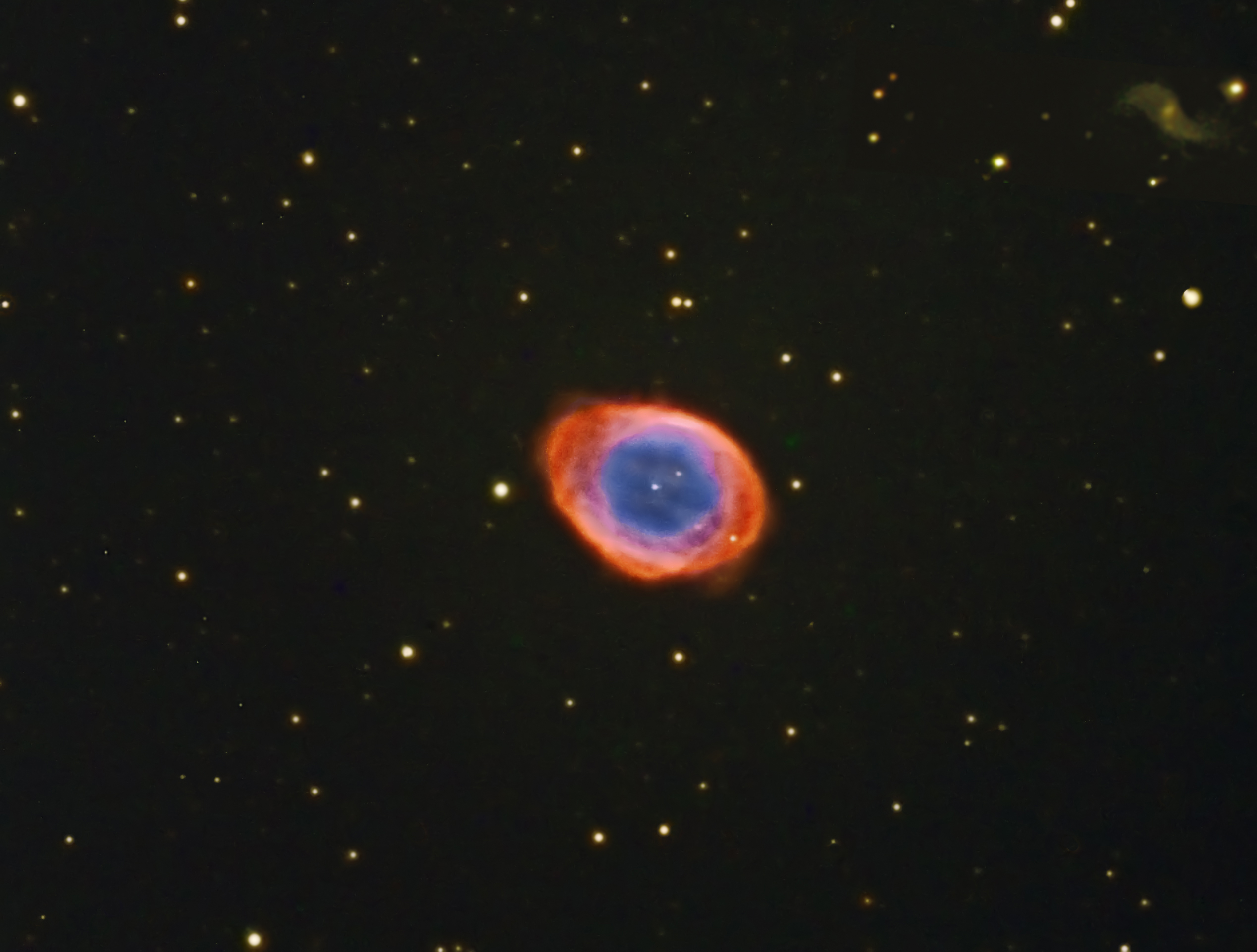 M 57 hatte ich früher schon einmal aufgenommen, hier jedoch mit rund fünf Meter Brennweite, damit er zumindest auf dem Foto mit dem Helixnebel größenmäßig mithalten kann. Die Temperaturen waren bei uns in Niedersachsen in dieser Nacht so hoch, dass es die Kühlung meiner Kamera nur auf minus 20 Grad schaffte.