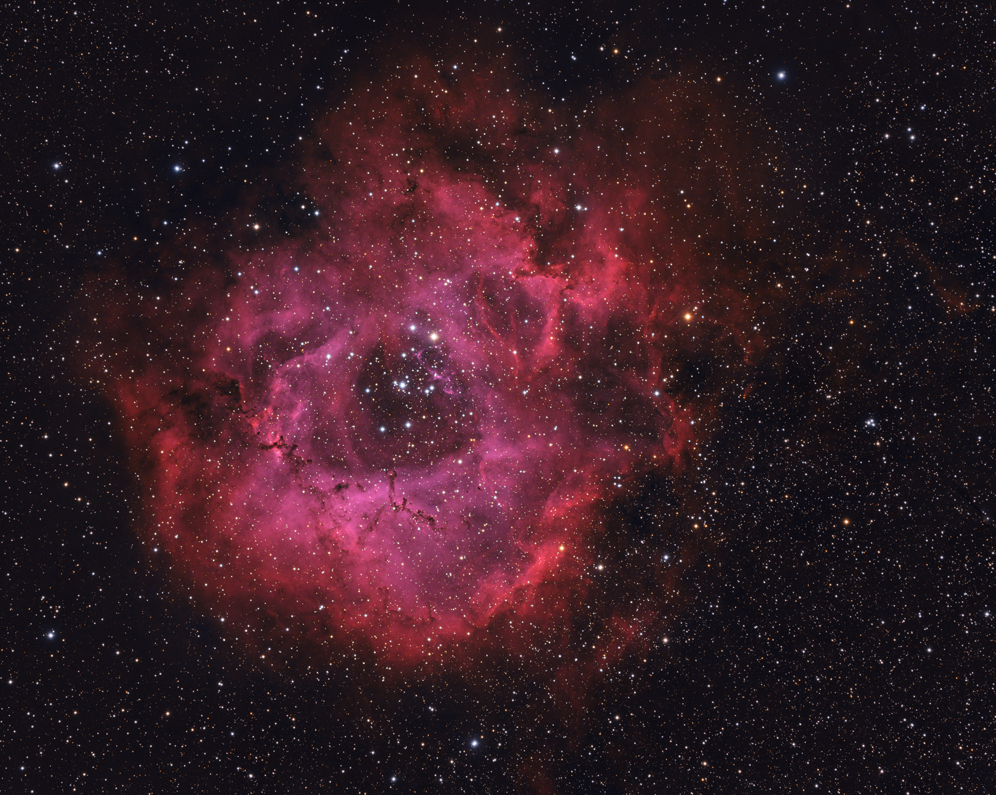 Der Winter bot in Ostösterreich nicht viel Möglichkeit zur Fotografie. Es galt jede Wolkenlücke und Mondphase zu nutzen. Daher entschied ich mich für ein Bicolorbild des Rosettennebels, um auch Mondnächte nutzen zu können, auch wenn die Seeingbedingungen nicht ideal waren.