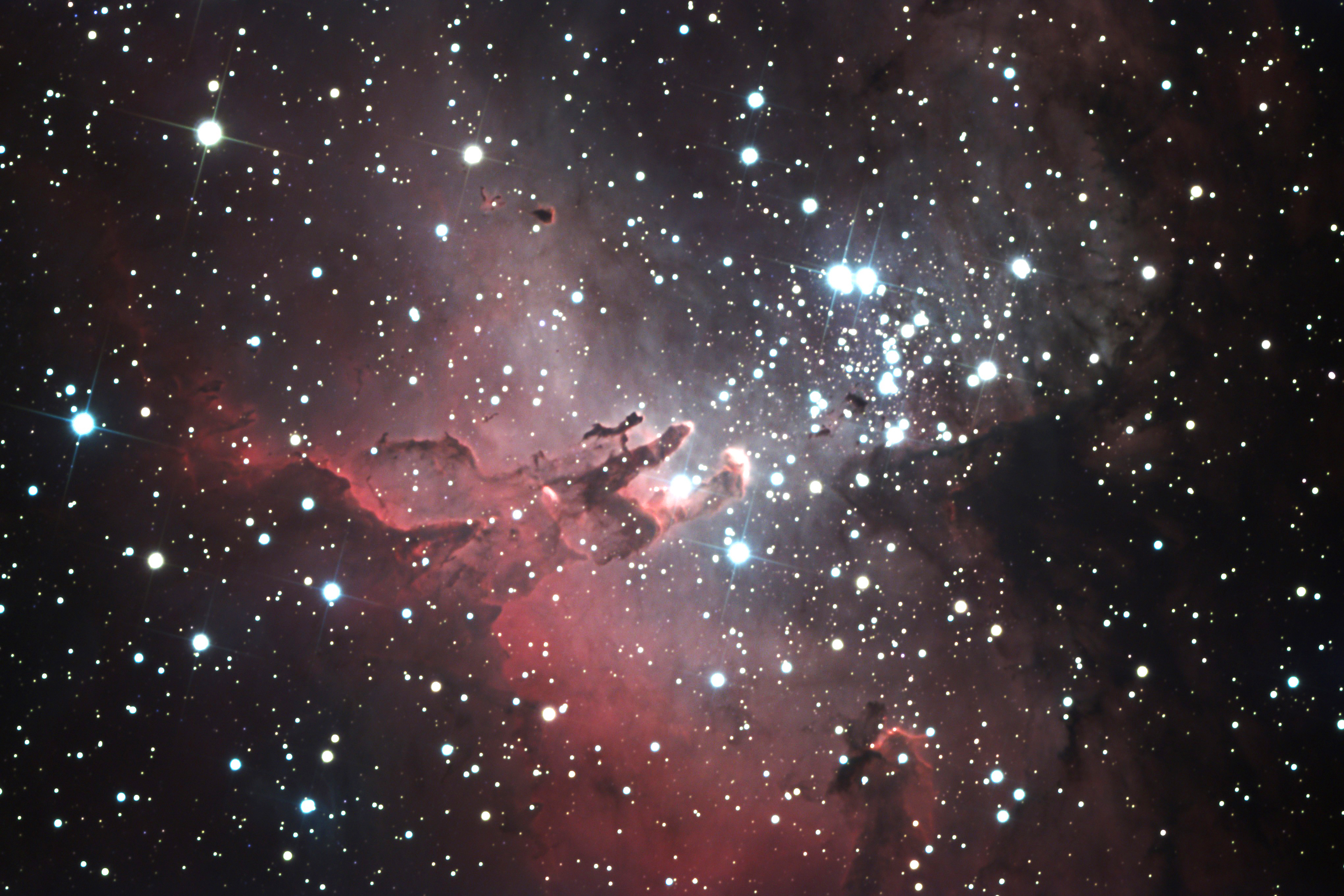 Messier 16, der Adlernebel, enthält Staubsäulen, die den m. E. wunderschönen Namen "Säulen der Schöpfung" (Pillars of Creation) erhalten haben und seit den beeindruckenden Aufnahmen durch Hubble sehr bekannt wurden.