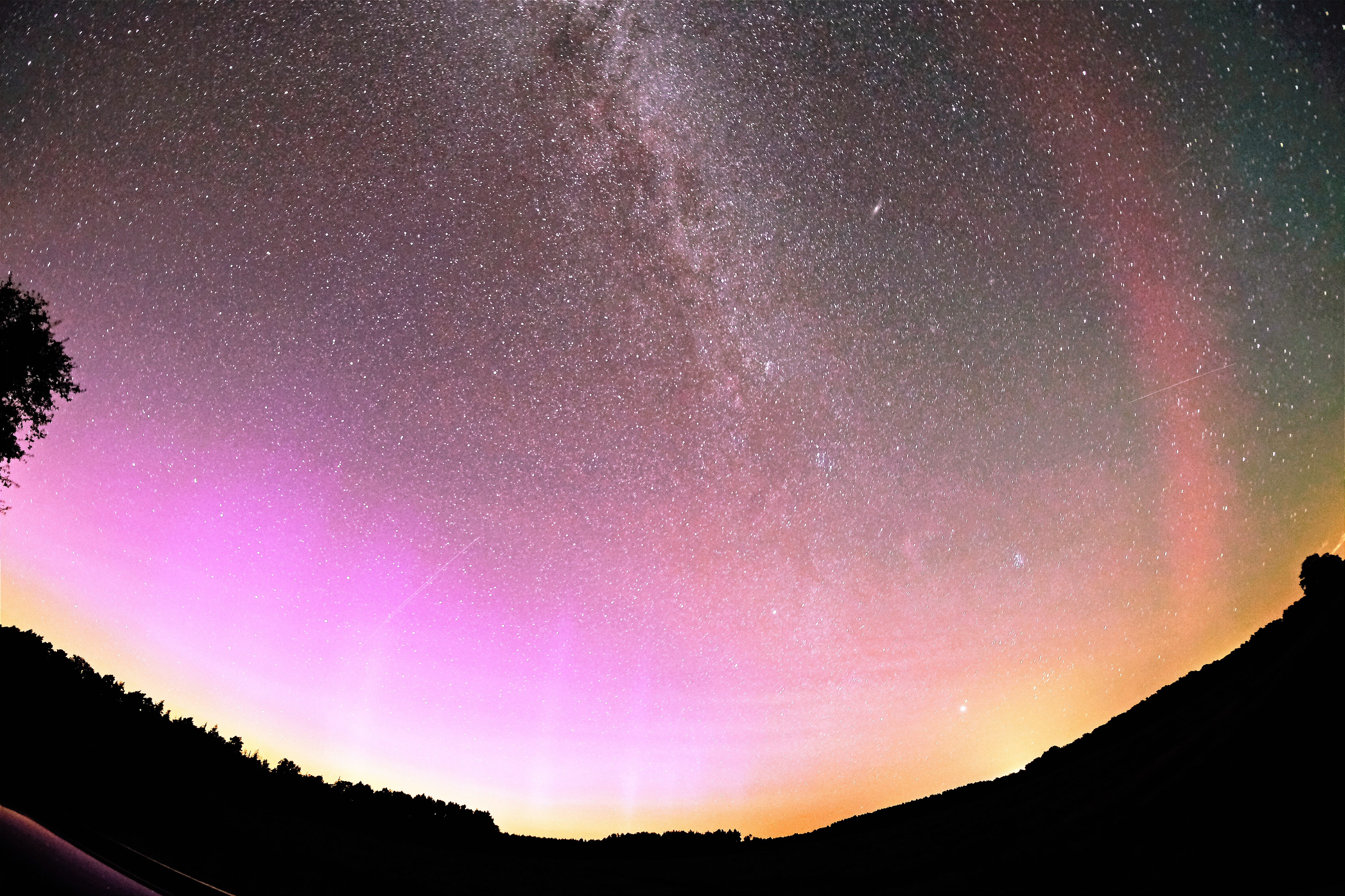 Bei der Polarlichtnacht am 12/13. August 2024 konnte ich mit einem Fisheye-Objektiv den SAR-Bogen aufnehmen.