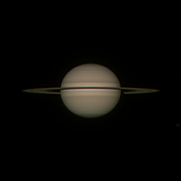 Saturn kulminiert an meinem Standort kurz nach vier Uhr MESZ auf 40 Grad Höhe; passable Bedingungen, um wieder einmal Aufnahmen zu versuchen. Die kühle Morgenluft brachte zudem gutes Seeing mit sich. Das gezeigte Bild beinhaltet etwa 20000 Frames aus 11 Videos bei einer Verwendungsrate von 30 Prozent. Die angegebene Zeit der Aufnahme entspricht der Zeitreferenz der Derotation von elf Summenbildern mittels WinJUPOS.