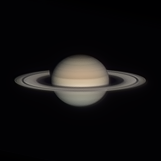 Am Abend des 2. Oktober 2023 versuchte ich bei sehr guten Seeing-Bedingungen (geschätzt 7/10) mehrere Videosequenzen von Saturn aufzunehmen. Der Planet stand während der Aufnahme nur bescheidene 23 Grad über dem Horizont. Die aus fünf Sequenzen à 2 min Dauer erhaltenen und mit 20% Verwendungsrate gestackten Bilder wurden in Registax, Astra Image und Photoshop bearbeitet und anschließend mit WinJupos derotiert.