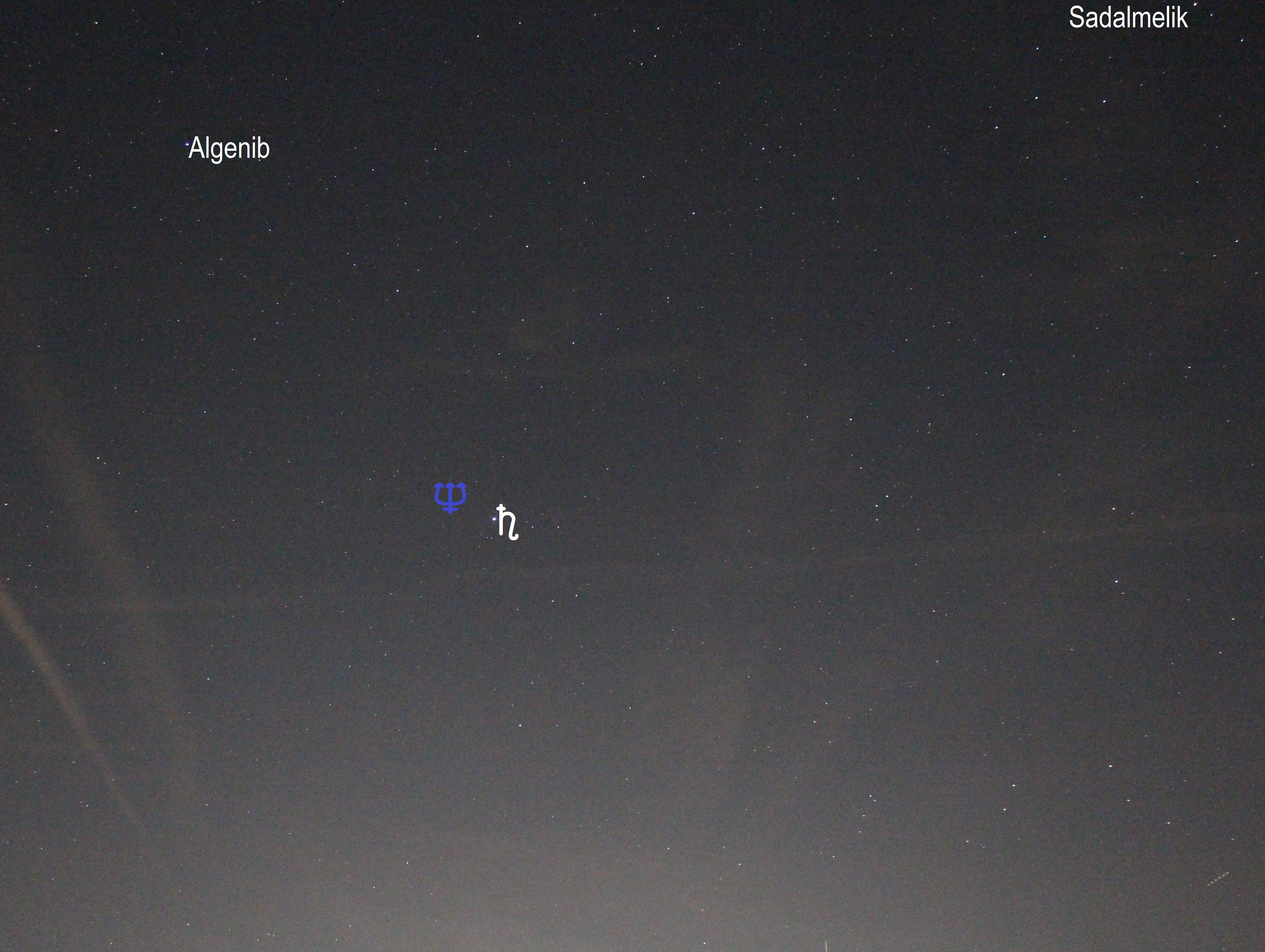 Leserbilder Astronomie: Saturn im Sternbild Fische (Objekte beschriftet)