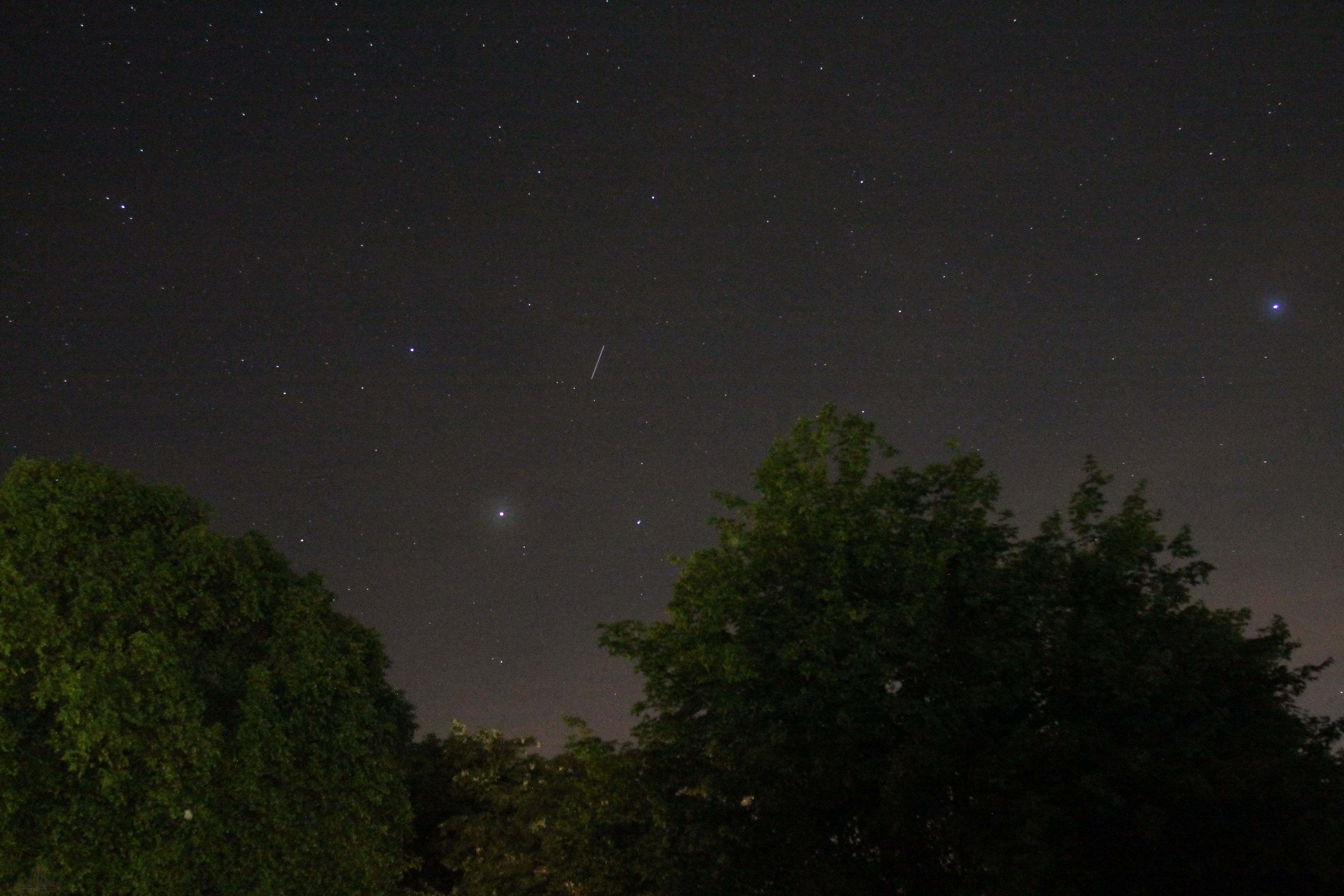 Eine Satellitenspur kreuzt das Bild. Von welchem Satelliten dürfte sie stammen?
