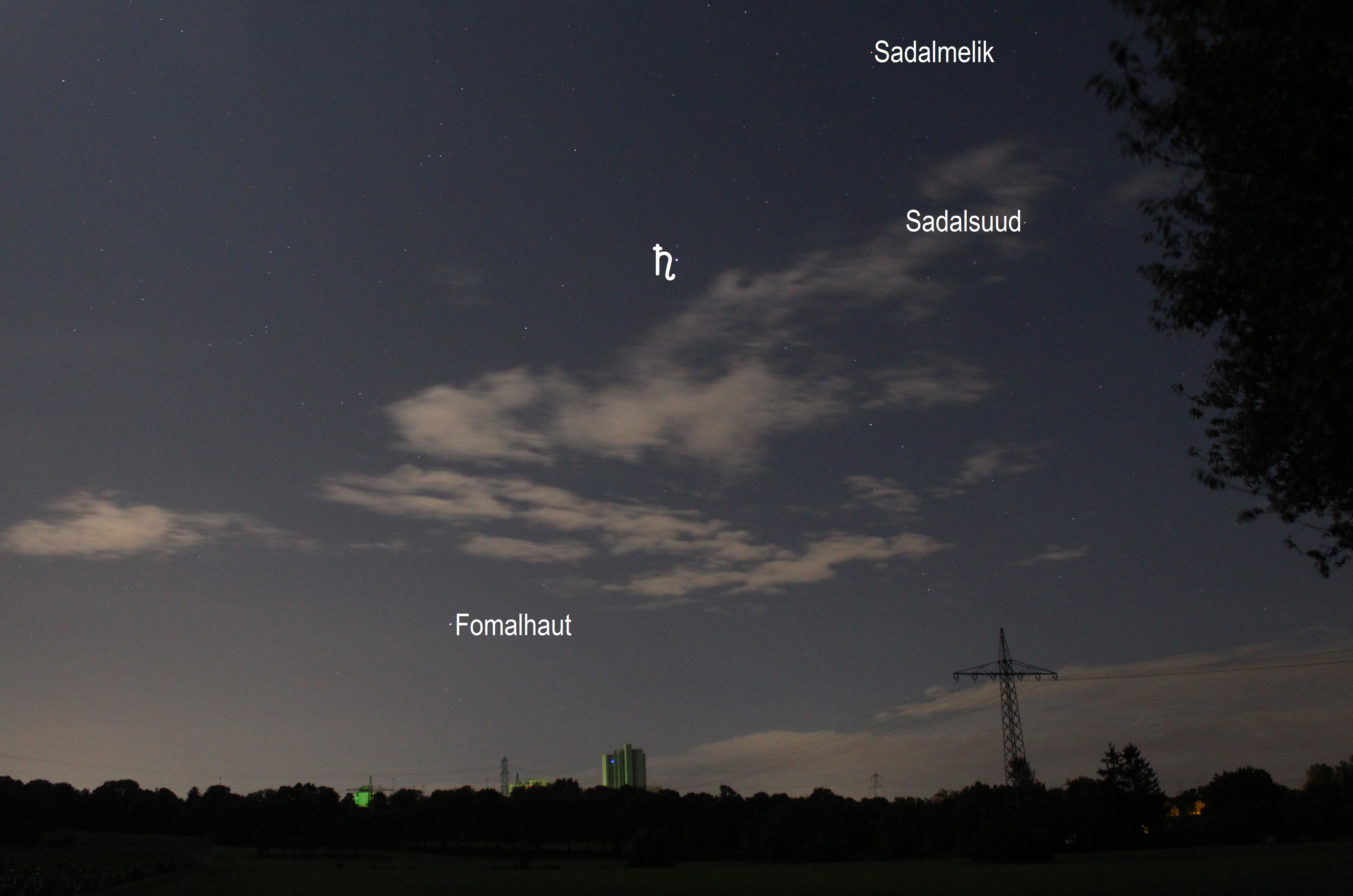 Leserbilder Astronomie: Saturn im Sternbild Wassermann (Objekte beschriftet)