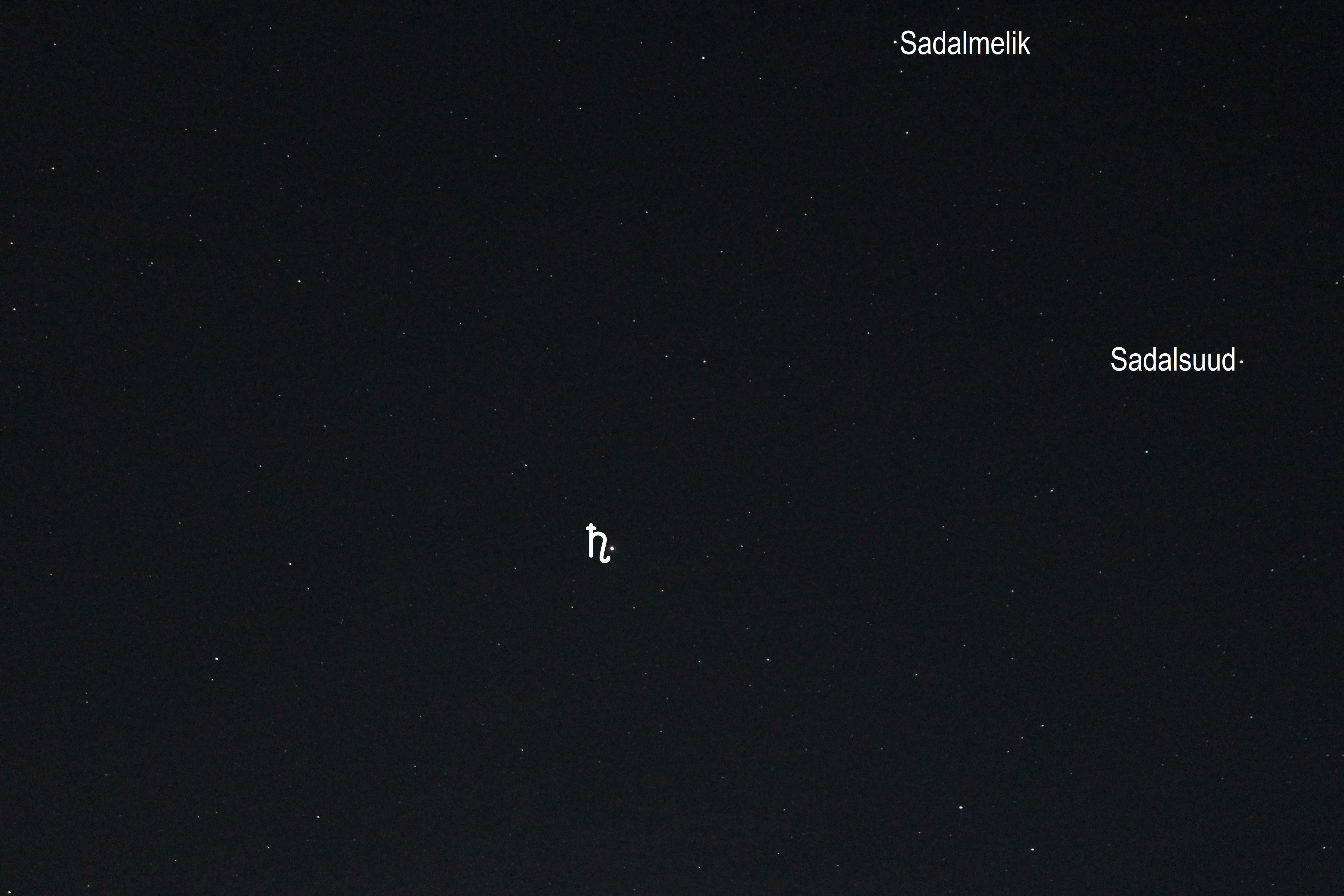 Leserbilder Astronomie: Saturn im Sternbild Wassermann (Objekte beschriftet)