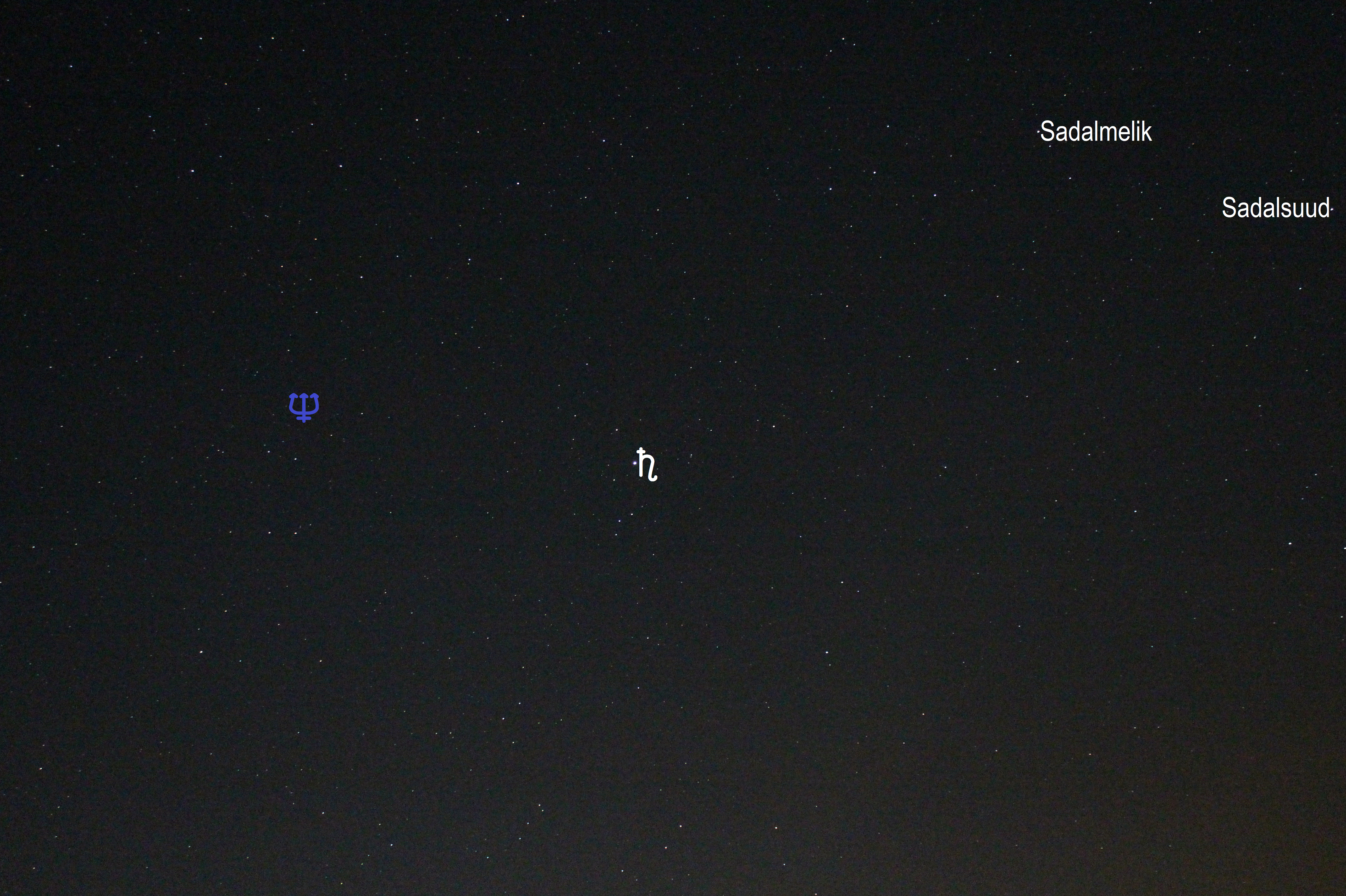 Leserbilder Astronomie: Saturn im Sternbild Wassermann (Objekte beschriftet)