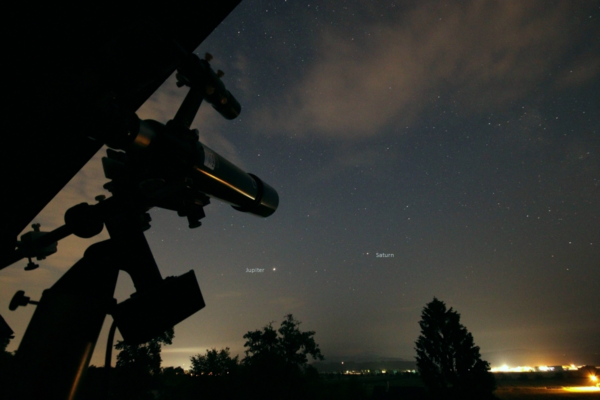 Als ich gestern morgens nicht mehr schlafen konnte, stellte ich meinen Orion 80/600mm ED-Refraktor, den ich als Souvenir aus San Francisco mitgebracht hatte auf eine alte Meade-Montierung und beobachtete Jupiter und Saturn.