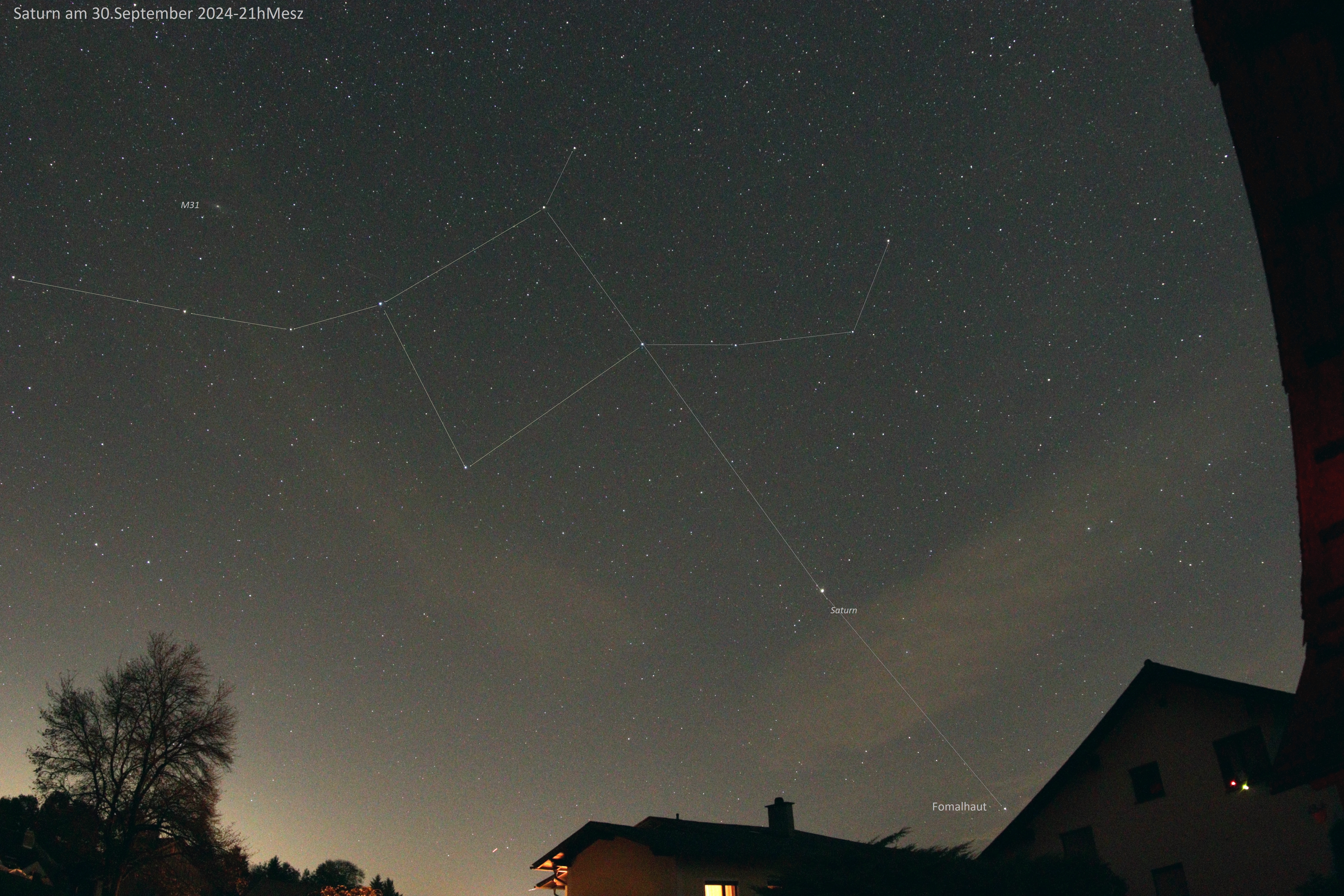 Am 23. September dieses Jahres stand Saturn (retrograd nach Opposition am 8. September) genau in der Verlängerung der Sterne Scheat und Markab! Genau an dieser Stelle befand sich auch Saturn, als ich ihn zum ersten Mal in meinem Leben mit meinem kleinen 80-Millimeter-Refraktor bei 40-facher Vergrößerung in einer Julinacht des Jahres 1965 »entdeckte«! Seitdem hat er ein volles zweites Mal seine Reise um die Sonne beendet ...