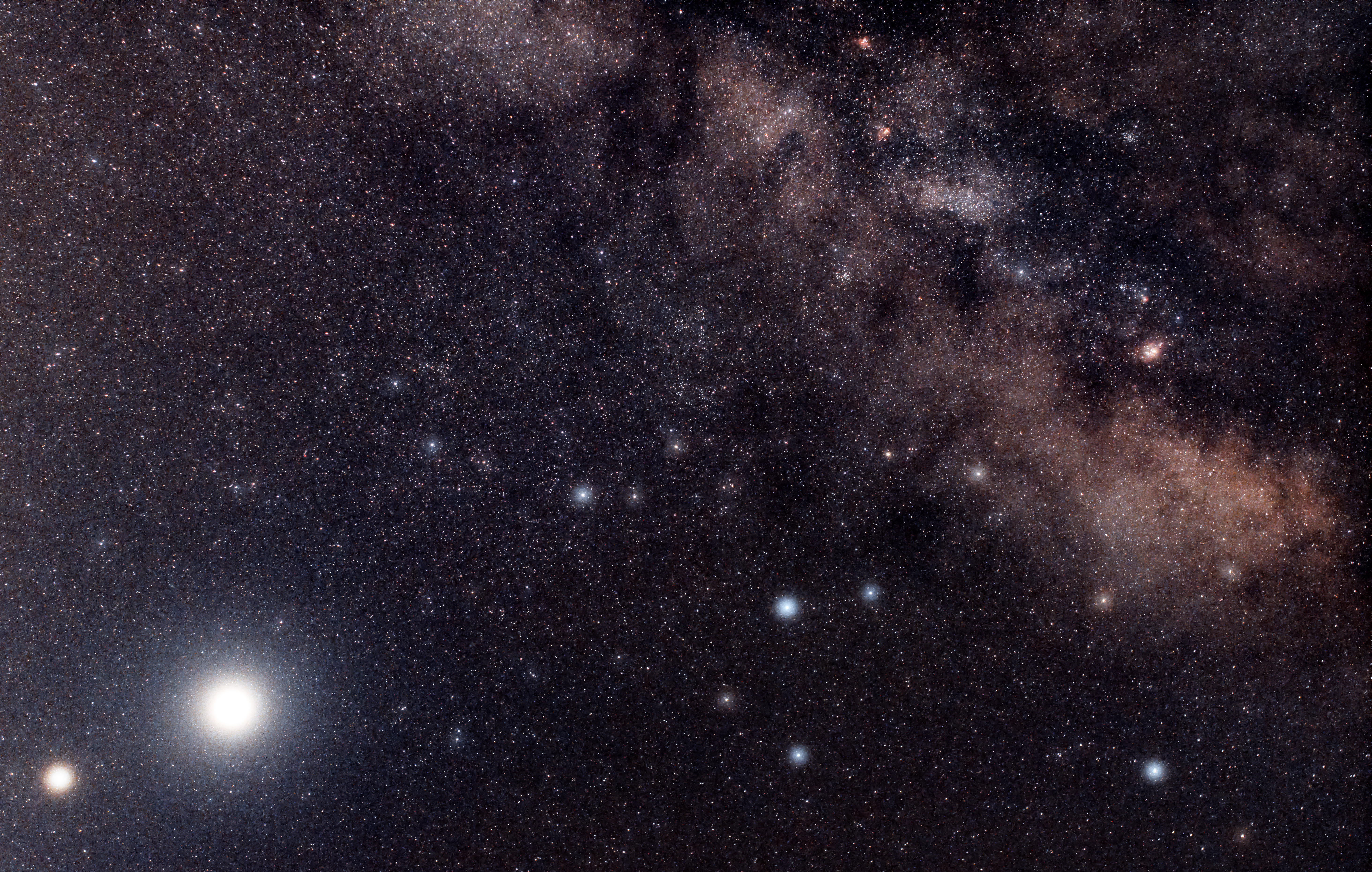 The planets Saturn and Jupiter seem to be approaching the Milky Way in Sagittarius.