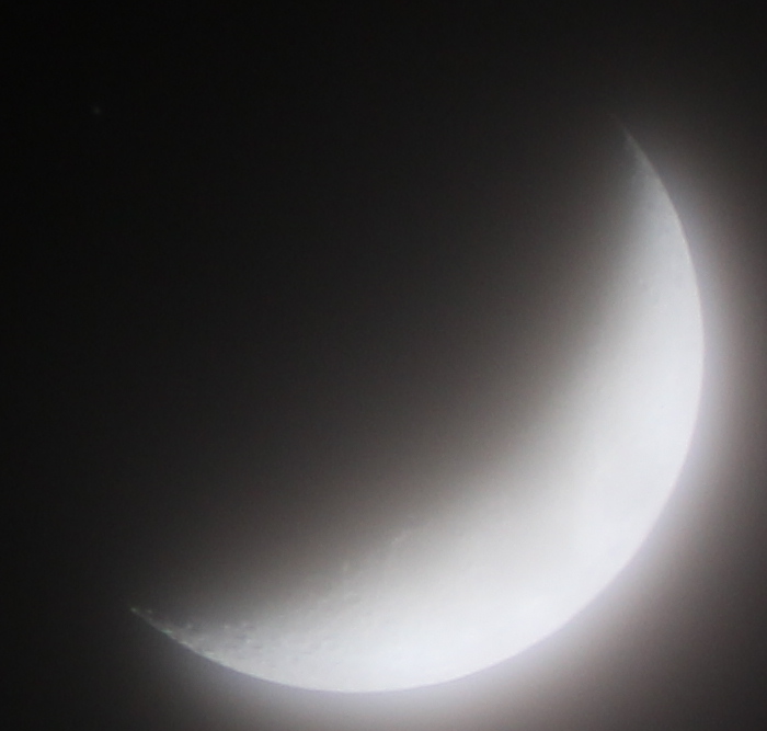 Obwohl am Aufnahmeort die Wolkendecke fast vollständig geschlossen war und selbst die hellsten Planeten Venus und Jupiter mit freiem Auge zeitweise nicht sichtbar waren, gelang es mir Saturn kurz vor seiner Bedeckung durch den Mond zu fotografieren.