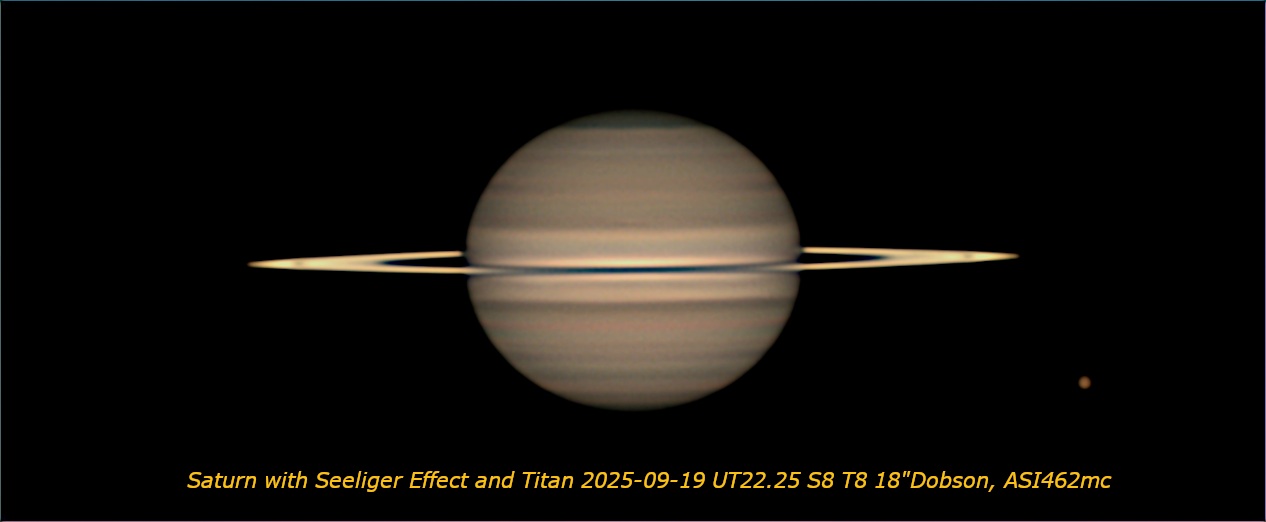 Leserbilder Astronomie: Saturn mit Titan und Seeliger-Effekt