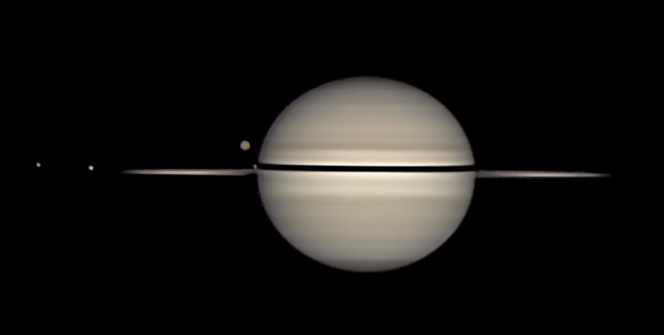 Leserbilder Astronomie: Saturn mit Tethys, Rhea, Titan und Dione