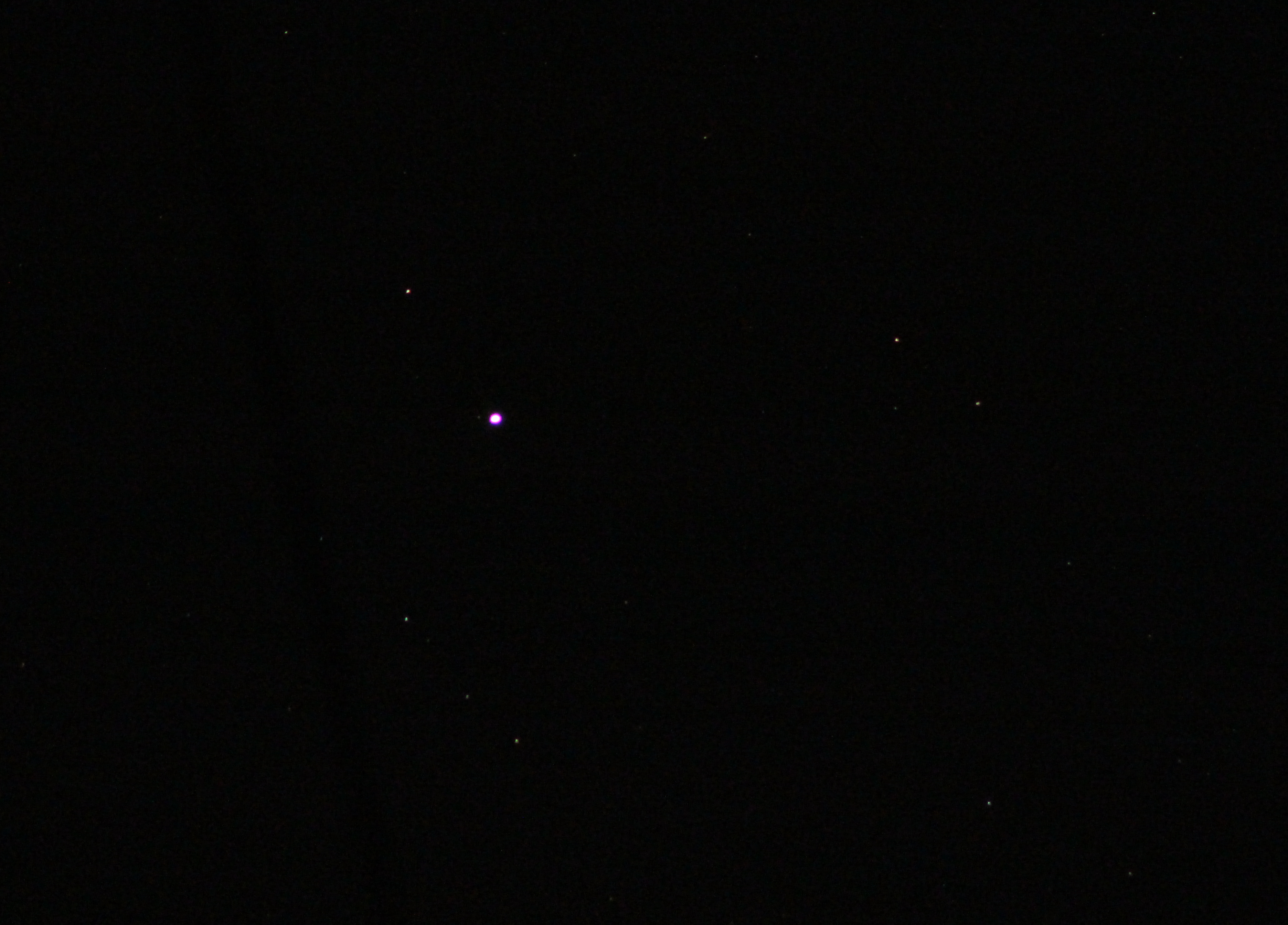 Titan ist als Lichtpunkt links neben Saturn zu sehen.
