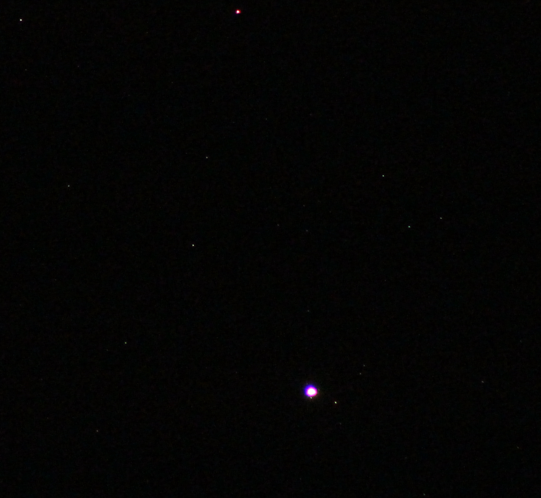 Titan ist als Lichtpunkt unterhalb neben Saturn zu sehen.