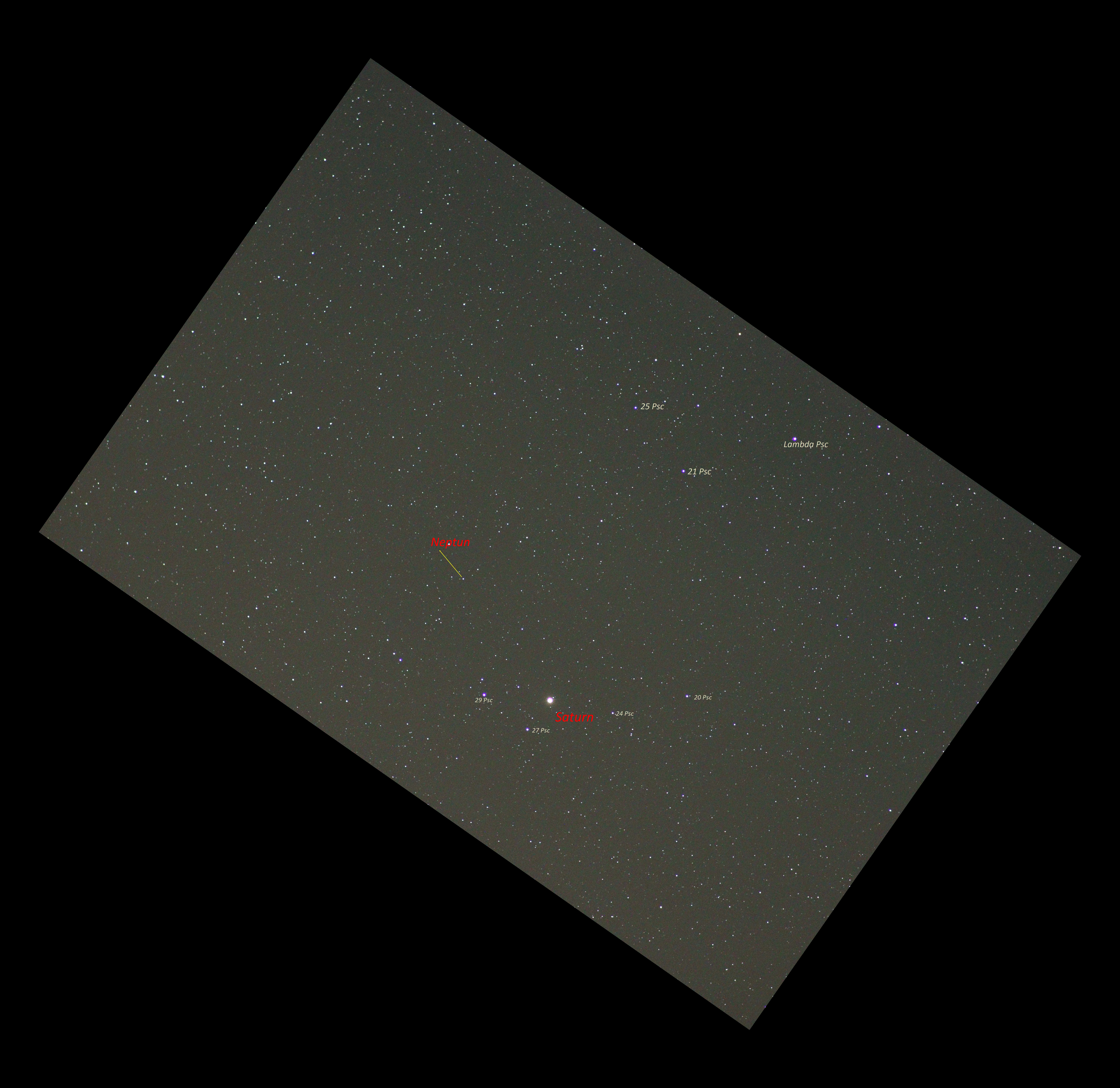 Aufnahme von Saturn und Neptun retrograd im Abstand von 2,6 Grad.