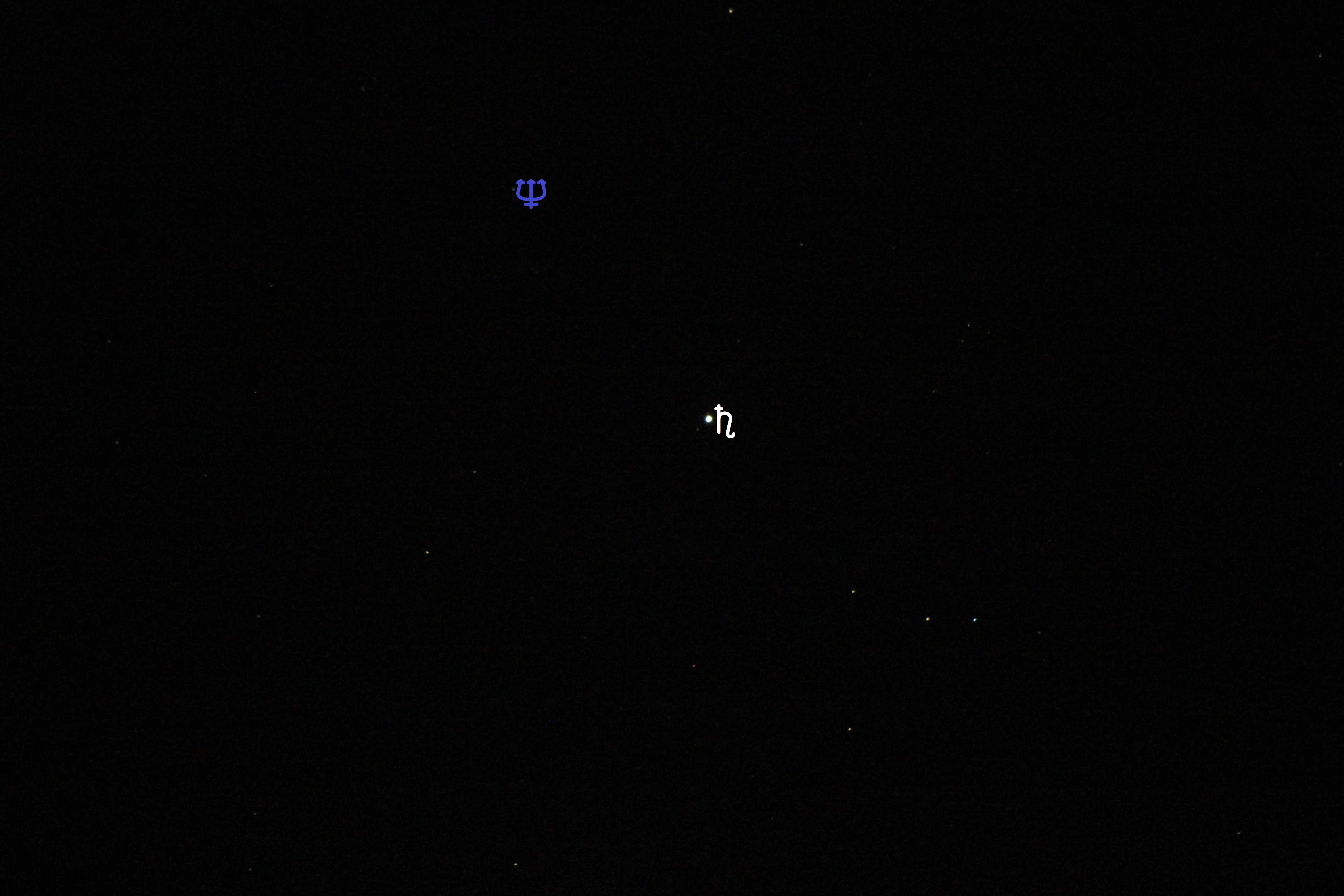 Leserbilder Astronomie: Saturn und Neptun in gegenseitiger Konjunktion (Objekte beschriftet)