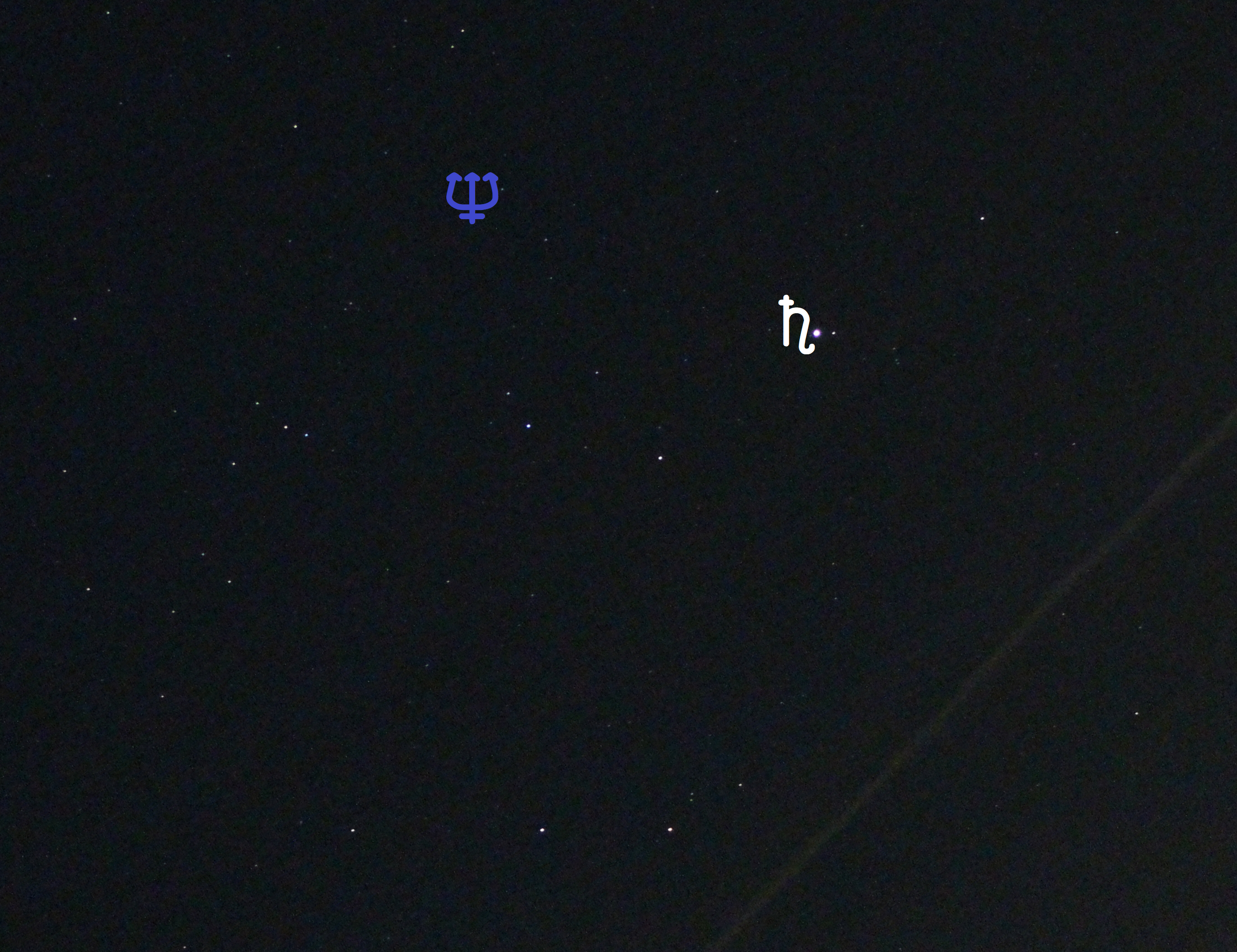 Leserbilder Astronomie: Saturn und Neptun (Objekte beschriftet)