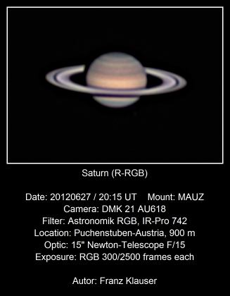 R-RGB Bild des Ringplaneten, aufgenommen am 27.6.2012 um 22:15 MESZ