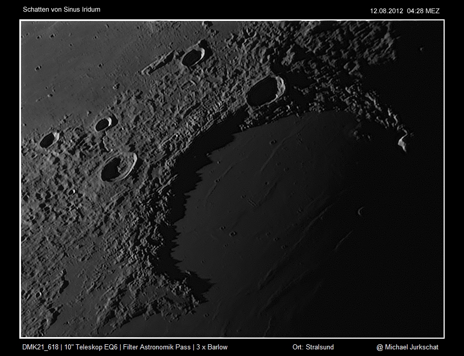 Am frühen Morgen des 12.08.2012 konnte ich diese Schatten am Sinus Iridum ablichten.