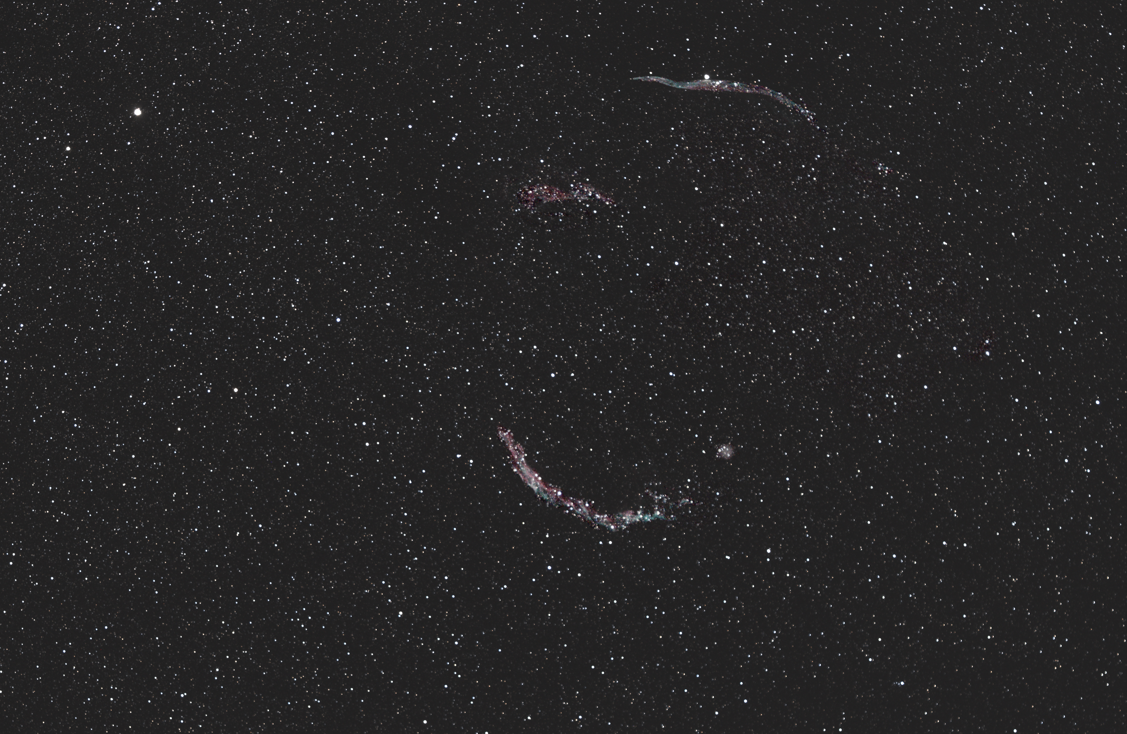 Der Schwan hat soviel für den Astrophotographen zu bieten, auch Nachts um 1:00 Uhr. Hier die wunderschönen Schleiernebel nur mit Teleobjektiv aufgenommen.