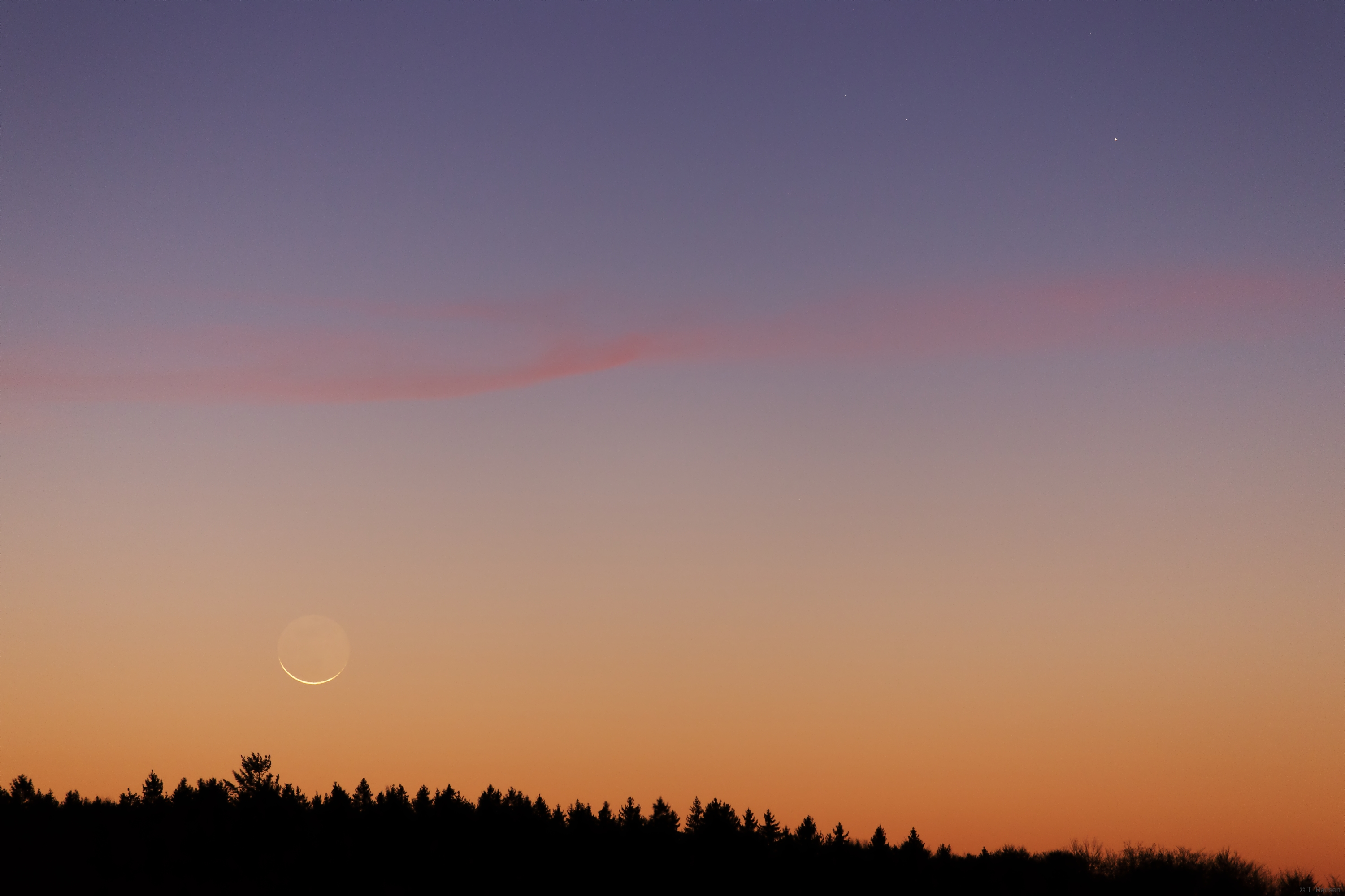Ein heftiger Wind sorgte am Morgen des 27. Oktober 2019 für eine sehr gute Transparenz, welche es gestattete die liegende, schmale Mondsichel bei knapp 1,5 Prozent Beleuchtungsgrad zu beobachten. Zuvor war etwas weiter westlich auch Mars aufgegangen und ein mit bloßem Auge gut wahrnehmbar.