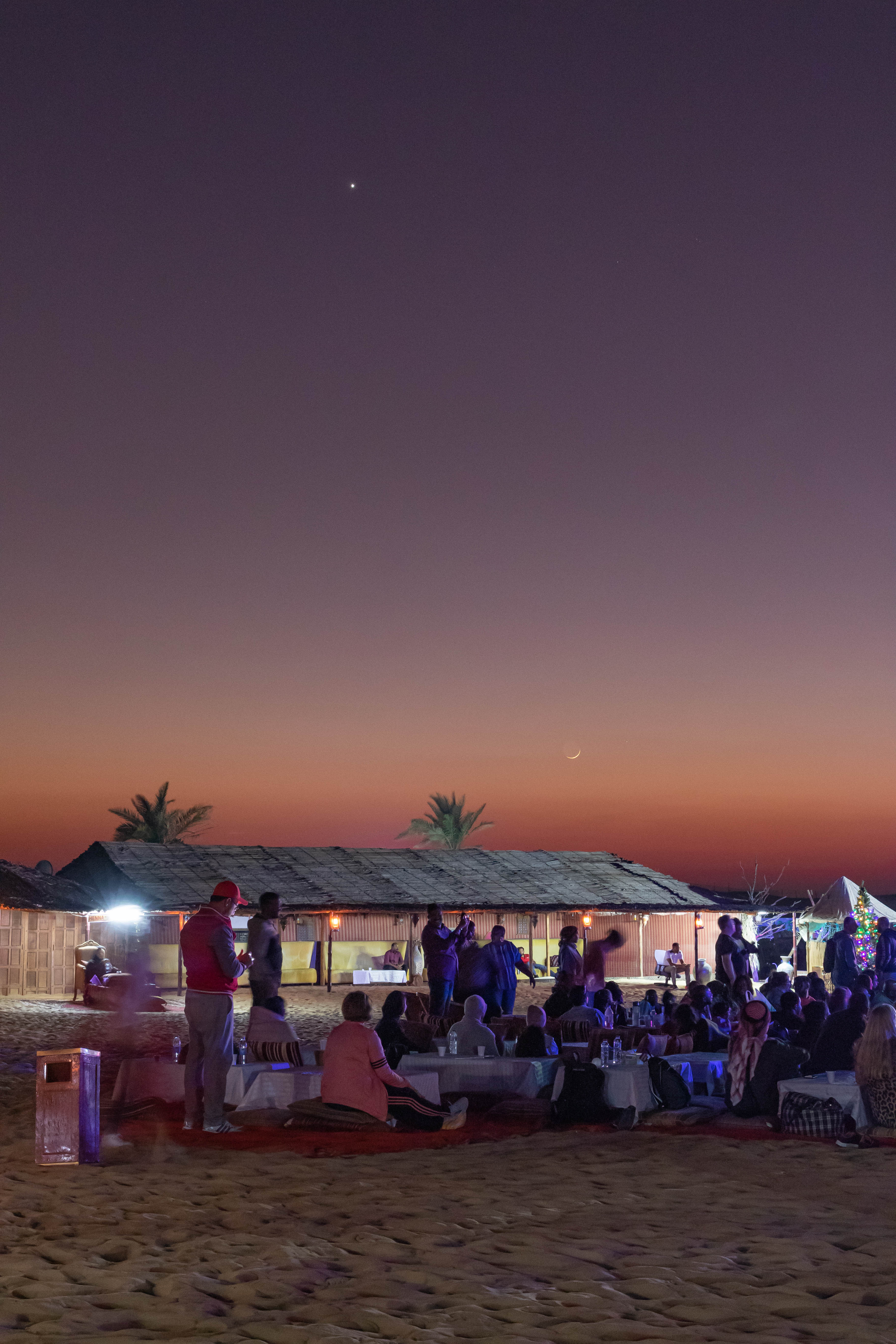 Aus einem Beduinencamp in der Wüste vor Abu Dhabi konnte ich die Konstellation der hellen Venus und der schmalen Mondsichel aufnehmen. Rechts neben dem Mond ist schwach der Saturn zu erkennen.