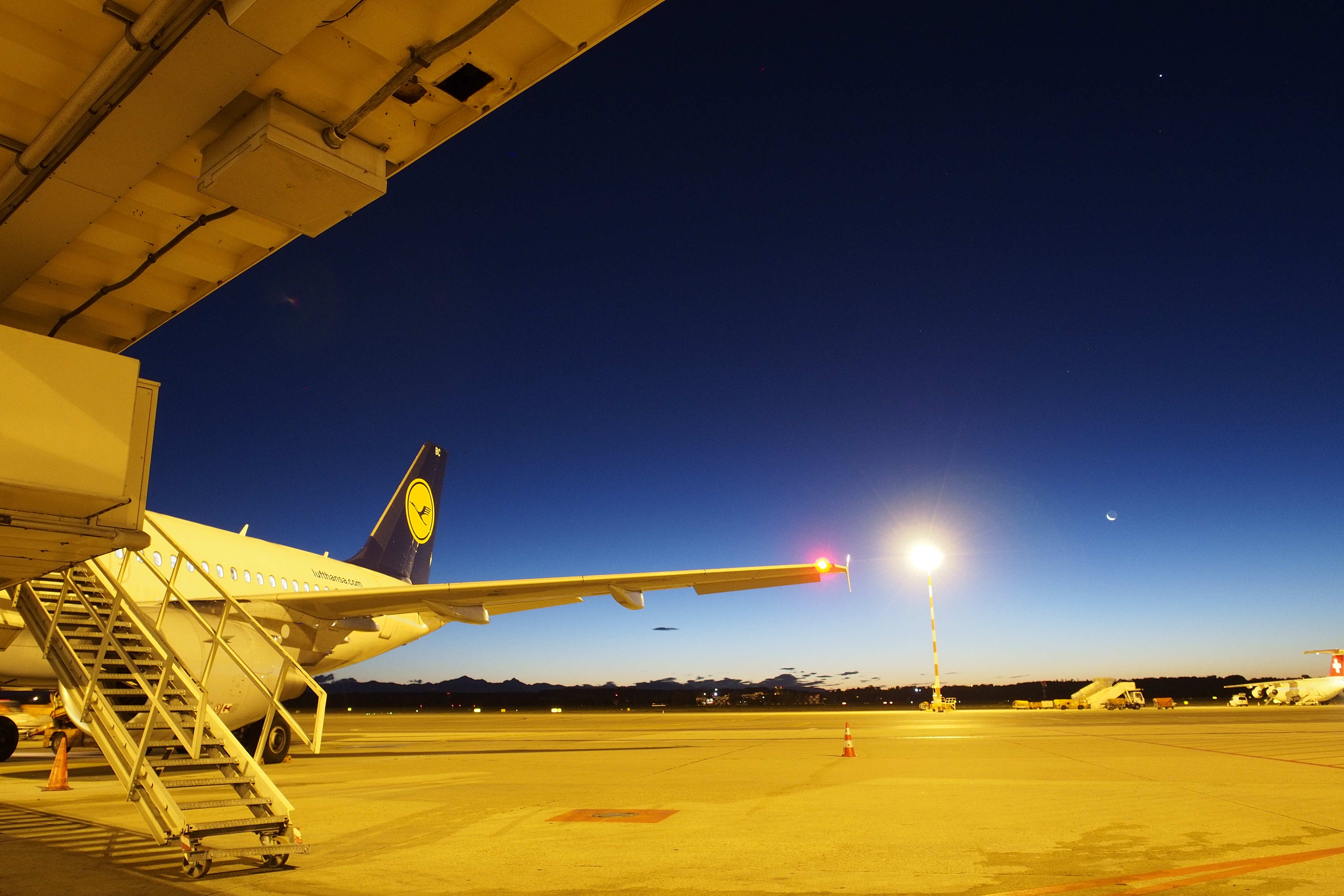 Am frühen Morgen standen am Mailänder Flughafen Malpensa Jupiter und die schmale, abnehmende Mondsichel (50 Stunden vor Neumond) fast senkrecht übereinander.