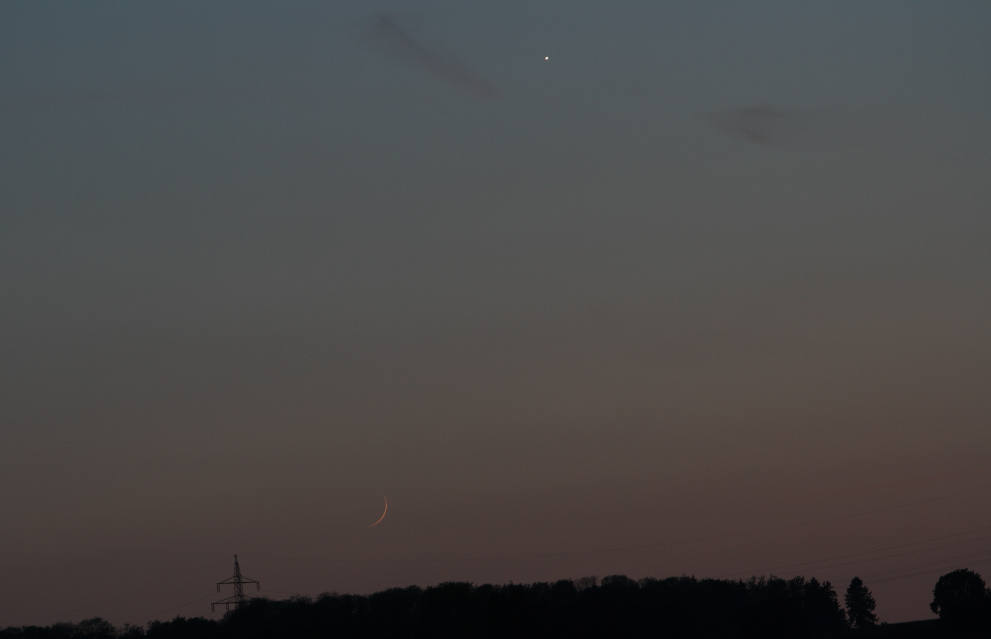 Noch ein Nachtrag vom 22. Mai 2012. An diesem Abend gelang es mir, die schmale Mondsichel zu fotografieren. Als Bonus dazu die Venus.