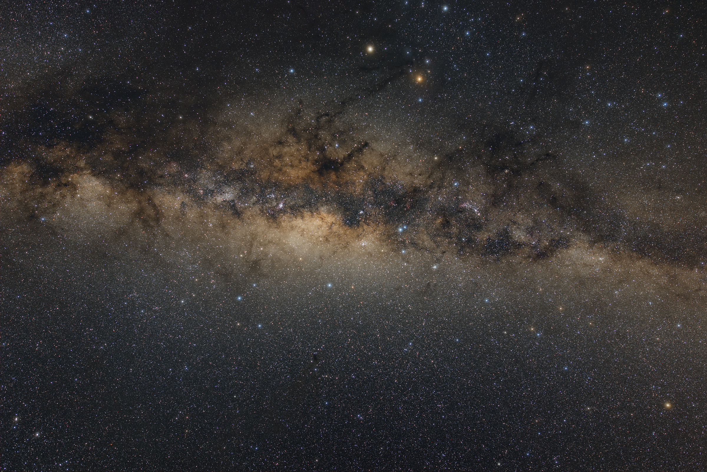Dieses Bild wurde bei leichter Zirrusbewölkung aufgenommen, die wie ein Weichzeichnungsfilter auf die Sterne wirkt. So kommen die Sterne der Scorpius-Centaurus-Assoziation im rechten, oberen Teil des Bilds gut zur Geltung.