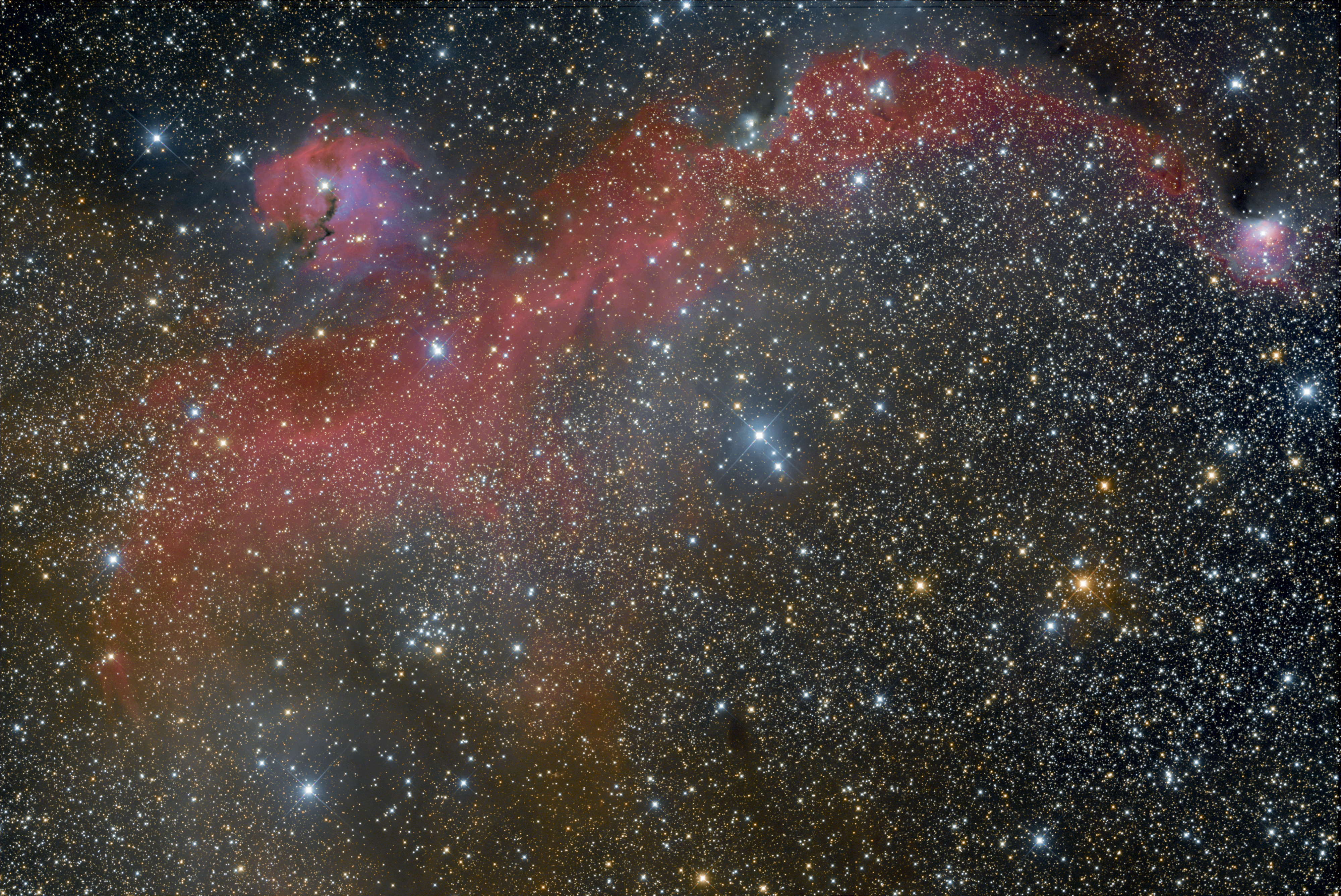 Der Seemöwennebel, IC 2177, gehört zu den prominenten Emissionsnebel im Sternbild Einhorn. Diese Aufnahme wurde im April 2024, als Testaufnahme, an einer neu errichteten Sternwarte auf der Rooisand Desert Ranch, Namibia, gewonnen.