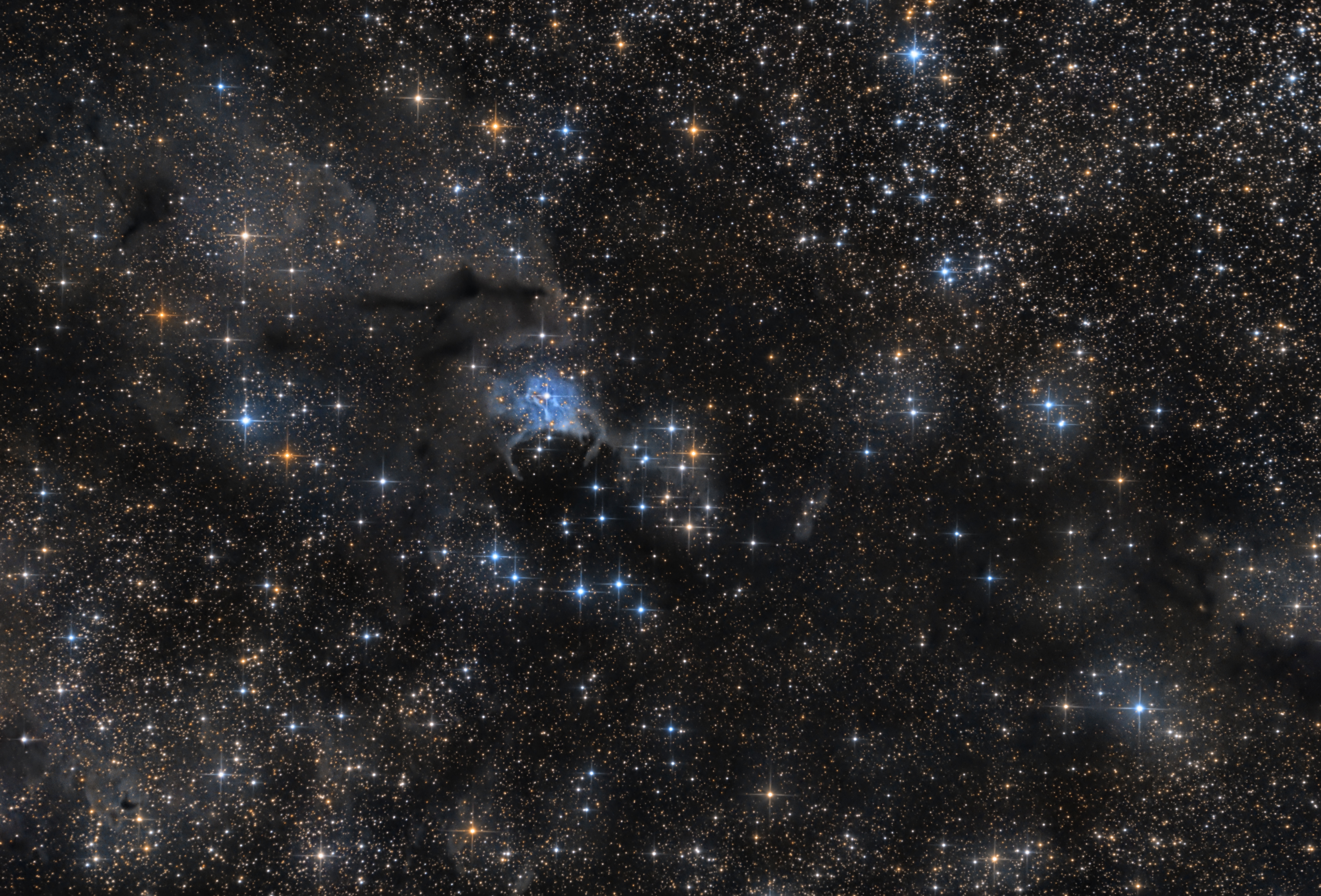 Im September 2019 entdeckte ich diesen netten Sternhaufen, bei dem man mit etwas Fantasie aus der Anordnung der Hauptsterne die Kontur eines Segelbootes nachzeichnen kann. Durch entsprechend lange Belichtung kann man dort einen schönen Reflexionsnebel und diverse Dunkelnebel finden, die sich dann zu einem abwechslungsreichen Gesamtbild fügen.